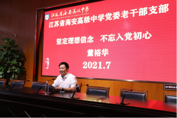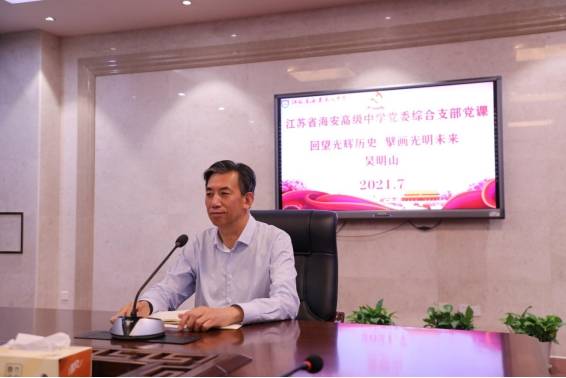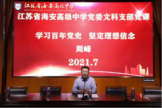 集体活动中董裕华还对贯彻习近平总书记“七一”重要讲话精神专题组织生活会的相关工作进行了布置。他宣读海安市教育工委《关于做好学习宣传贯彻习近平总书记“七一”重要讲话、深入开展党史学习教育工作的通知》,并对《9323彩集团关于做好学习宣传贯彻习近平总书记“七一”重要讲话、深入开展党史学习教育工作的方案》进行了解读。同时他要求:各党支部要组织学习习近平总书记“七一”重要讲话、总书记关于学习和总结党的历史的重要论述,结合专题组织生活会,谈谈体会、找不足、明举措;要围绕学习贯彻习近平总书记“七一”重要讲话精神,开展党性分析,交流学习体会;党员领导干部要严格执行双重组织生活会制度,以普通党员身份参加所在支部的专题组织生活会。