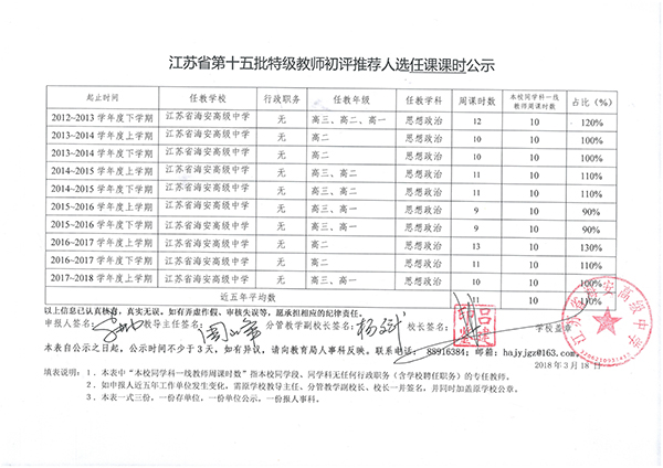 根据市教育局《关于做好江苏省第十五批特级教师评选推荐工作的通知》(通教人师〔20185号)文件精神和县教育局《关于做好江苏省第十五批特级教师推荐工作的说明》文件要求,经个人申报、学校研究,拟确定谢健波、李勤等2位同志为江苏省第十五批特级教师推荐人选。
