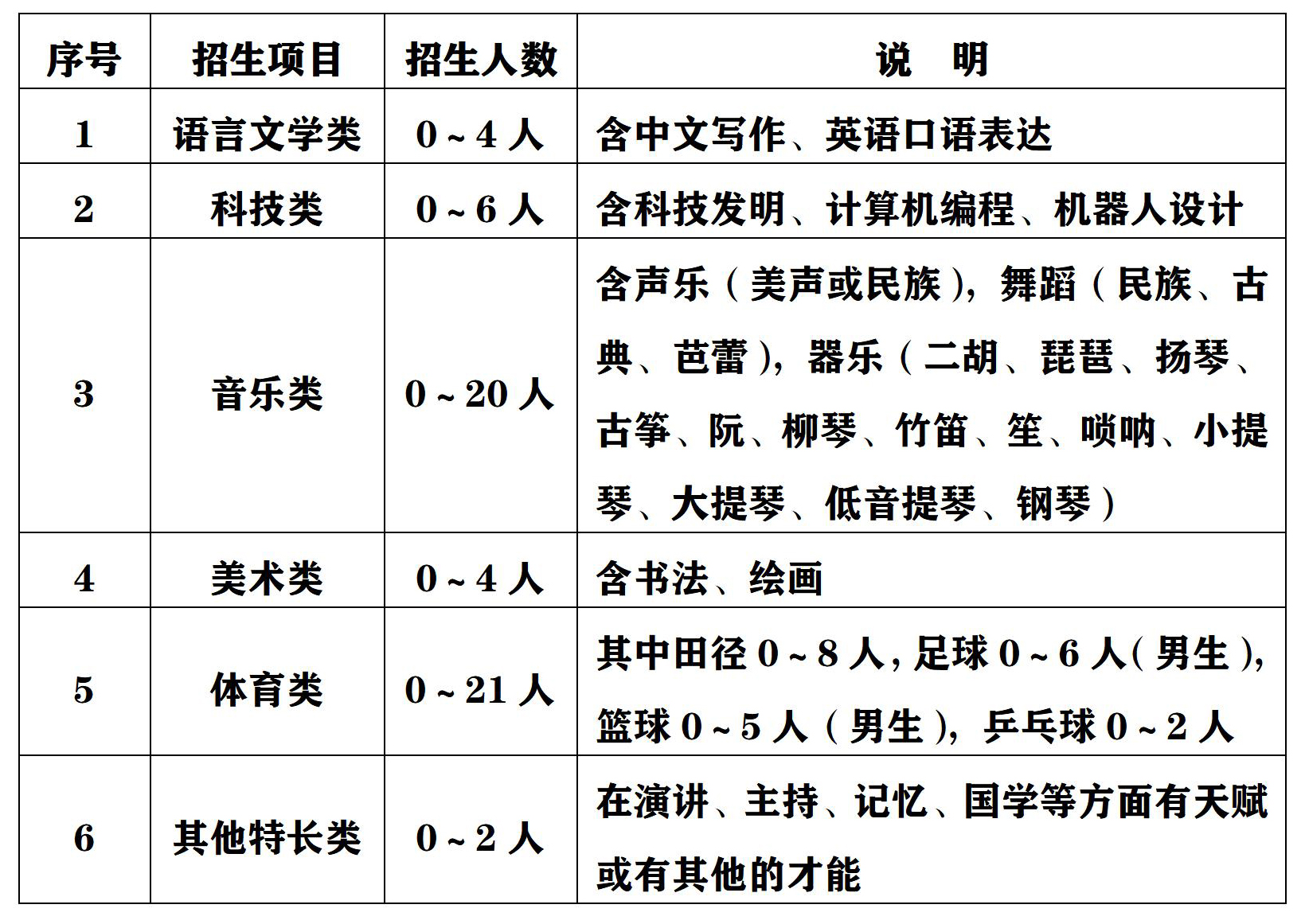 1.本市应届初中毕业生。其综合素质必备条件为:与我校特长招生相对应的综合素质评价项目等级必须为A,其余项目的等级达到普通高中招生录取的要求;其学业水平测试等级达到普通高中招生录取的要求。