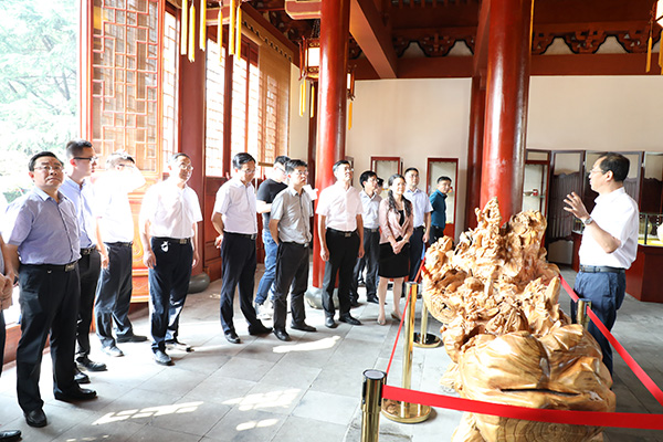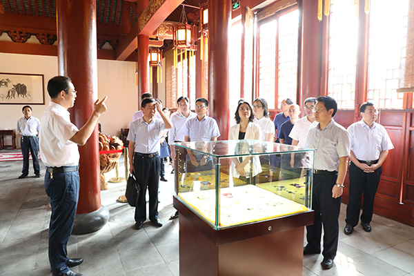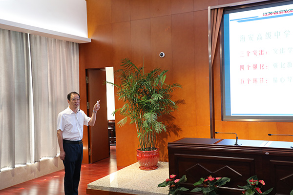 吕建书记结合我校大殿子的历史及重修发现的古钱币、瓷器陶器等部分文物和孔子的育人思想向来宾简要介绍了我校的建设和发展情况,阐述了我校以德为先、立德树人的育人理念;吕建书记还重点向代表们介绍了我校“思想政治工作、教育教学业绩”双提升书记项目的立项背景、实施路径、主要措施以及成果达成等相关情况。代表们对我校围绕“追求卓越、培养一流人才”的目标,由“育分”向“育人”转变、由“千人一面”向个性化发展转变的理念,以及围绕目标开展的创新组织生活形式、内容,发挥党组织保障、党员的先锋模范作用的书记重点项目表示充分肯定,尤其是对所取得的教育教学成果表示震撼和赞赏。