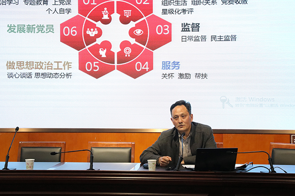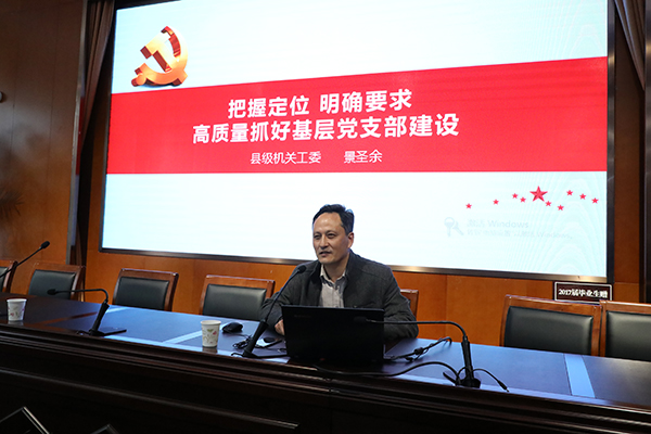 景书记肯定了我校长期以来党建工作和教育教学工作取得的突出成就,结合新时代党的建设总要求,介绍了全面从严治党的责任体系和全面内容。他联系学校党建工作中支部工作实际,从党支部的角色定位、党支部的主要任务、党支部的生活制度、党支部的工作要求等方面作了系统阐述,并对学校支部工作提出了建议,勉励我校党员干部充分发挥党员先锋模范作用,更好发挥基层党组织的战斗堡垒作用,创造出新的辉煌!