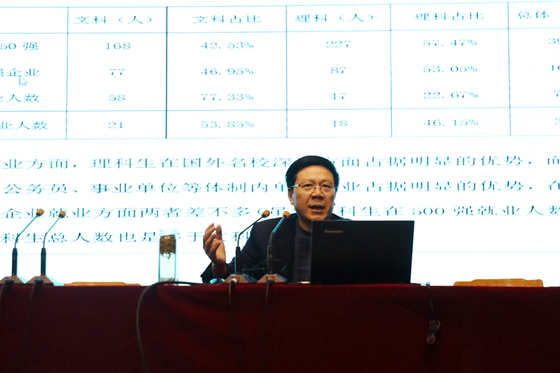 讲座的第一部分由学校党委书记、校长吕建主持。学校请来了南京大学校长助理、国家社会科学基金学科评审组专家、国务院学位委员会学科评议组成员、教育部特聘教授,教育部创新团队带头人范从来教授为同学们做了题为《认识文科》的生涯规划指导讲座。
