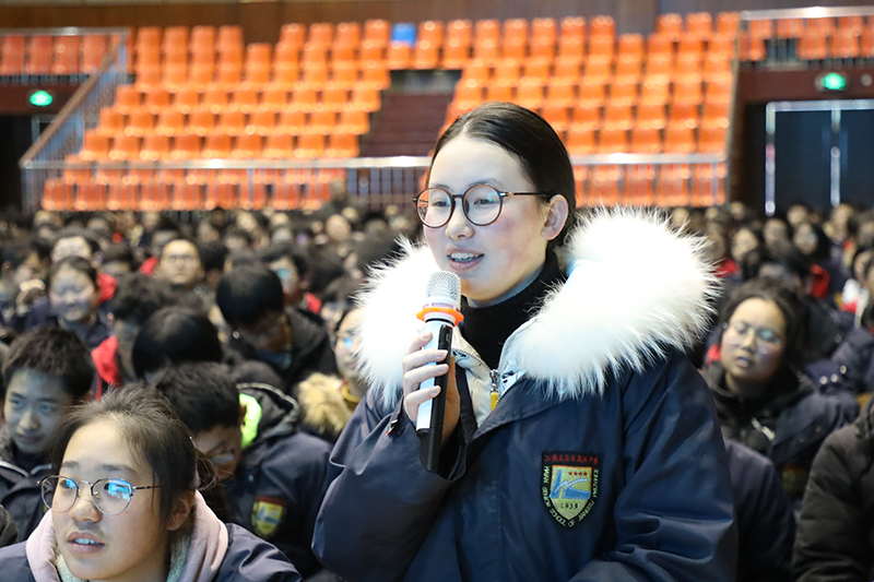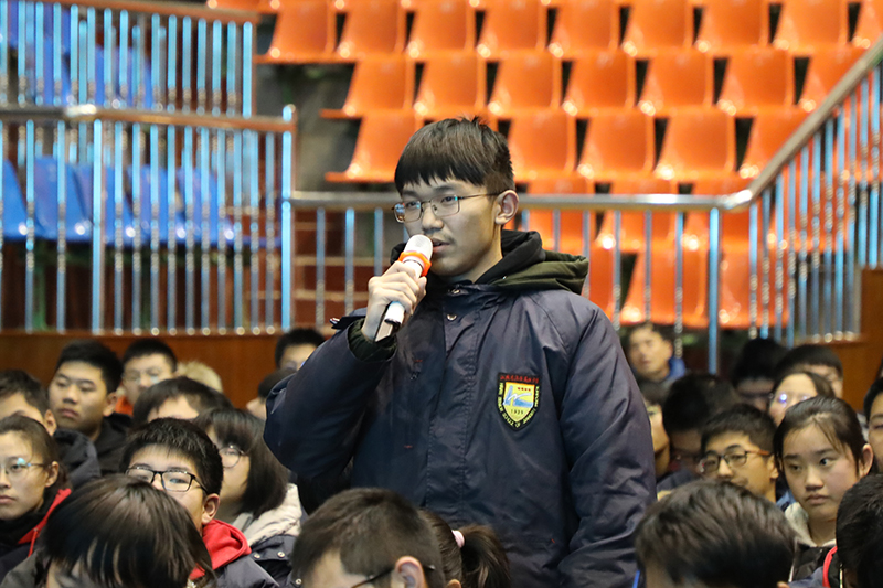 接着吕建校长结合选科、研究性学习等具体问题给同学们提出了建议。吕校长认为选科问题不是理科和文科孰优孰劣的问题,而应遵循兴趣、能力和国家民族需要的原则;规划人生不是车到山前必有路,而是要及早规划,要有社会责任担当;研究性学习要注重调查与研究,要勇于创新。最后吕校长勉励同学们要用一份责任、情怀和使命感去为做一个个人有为,社会有用的“新劳动者”。