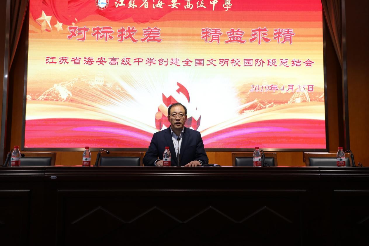 会上,学校党委书记、校长吕建全面总结了一年来学校在文明创建工作中所取得的成绩。一是通过文明创建,完善了各项制度,促进了学校科学化、制度化管理。二是通过创建,开展师德师风教育。促进了教师队伍的集群式成长;二是通过创建,加强思想道德教育。积极开展“两学一做”学习教育,提升了教师爱岗敬业意识逐。通过“阳光高中生”德育课程,系统提升了学生品格。三是通过创建,营造了浓郁的校园文化主题,充分利用教室的墙壁、走廊、文化墙、橱窗、网站、公众号等宣传阵地,广泛开展文明创建的宣传,初步建成了创建文明校园的立体宣传机制;四是通过创建,深入开展特色文化建设,学校围绕校园文化主题,打造了环境文化;开发了课程文化,让学校的文化渗透在课程中、课堂中、活动中,培养了学生良好的思想,规范了学生行为和生活方式。五是通过创建,校园环境日益美化,办学条件持续改善。