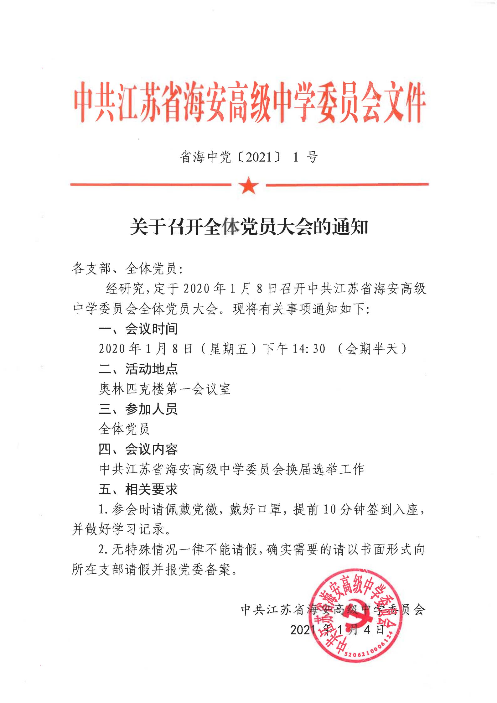 关于召开全体党员大会的通知