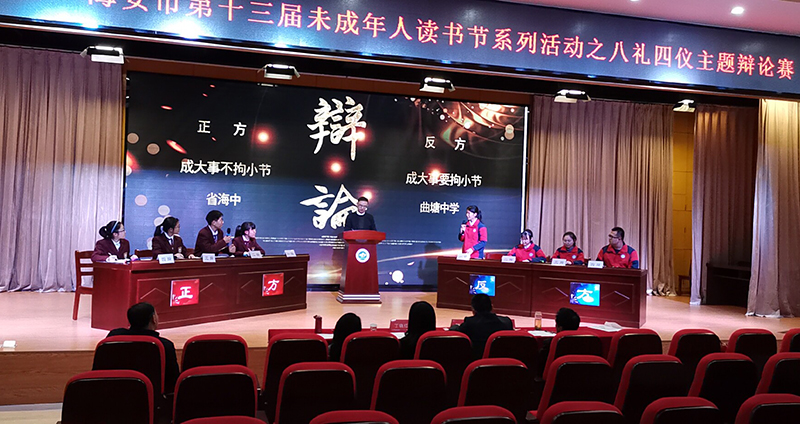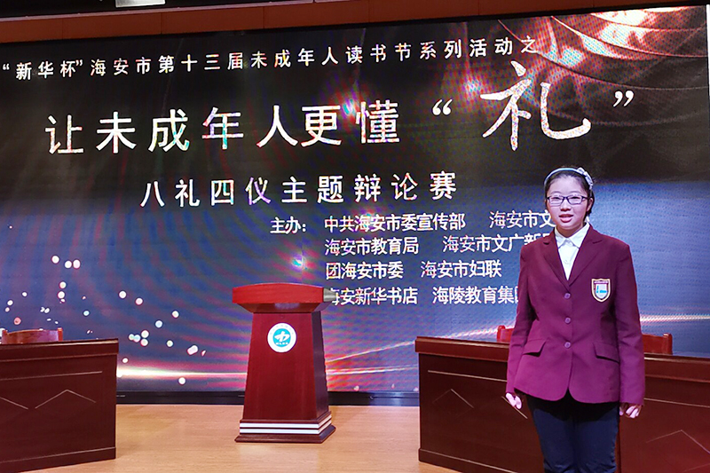 随着精彩的开场白,海安中学以高一创新班作为主力的辩论队在海安市“新华杯”第十三届未成年人读书节系列活动之“让未成年人更懂‘礼’八礼四仪辩论赛”中闪亮登场,也拉开了他们在本次辩论赛中夺冠之路的序幕。