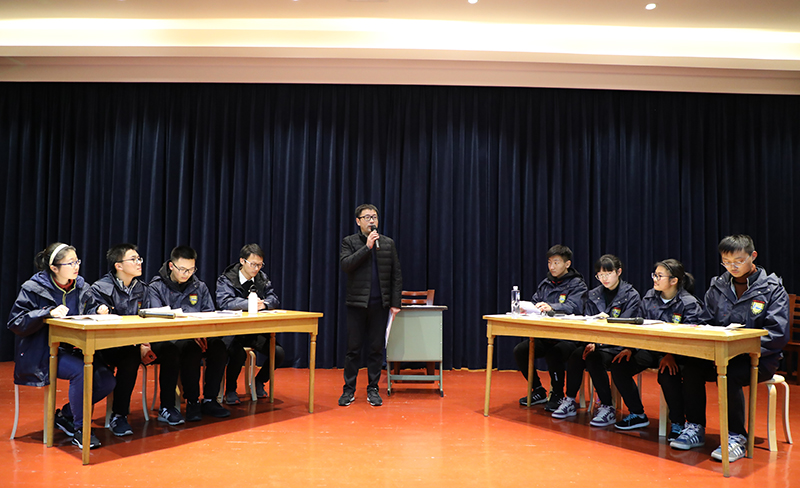 11月23日晚,德育处顾庆华主任组织王帅、何咸钧、丁雪云、奚华等指导老师们对辩论队的同学们进行了第二轮选拔和集体辅导,确定了4名主力队员,周峰副校长等老师给予了全面而精彩的专业指导,进一步给选手指明了训练要点和方向。