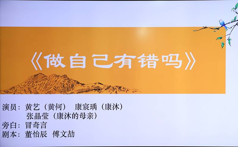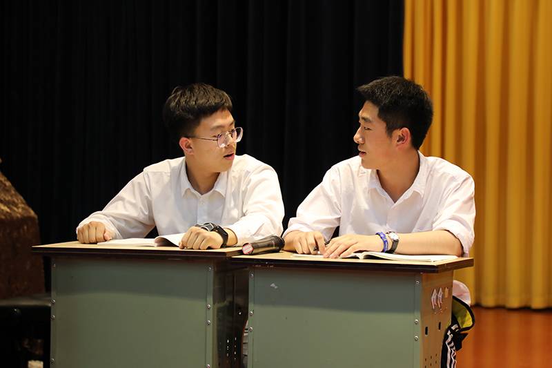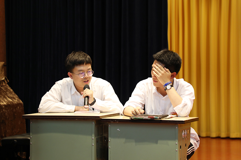 随后,主持人引导大家进入班会课的第二环节:检视自我。一部由傅文、董怡辰同学编写,康宸、黄艺、张晶莹、冒奇言同学表演的情景剧《做自己有错吗》将本次活动推向了高潮。此剧讲述了一段小插曲:小康同学在做自己的过程中,忽视了自身性格中存在的缺陷,危害了同桌黄何的利益。此举对他人造成影响,同时自己也十分苦恼。通过此环节,同学们都从角色身上或多或少地找到了自己的影子,感慨颇多。