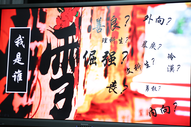 班会以一段振奋人心的入场视频拉开了序幕,此开场紧紧抓住了大家的心弦。随后,主持人何沐、范墨涵带领大家观看一段关于认识自我的短片。就此短片,主持人以丑橘和奶茶为例,带领大家进一步思考,引出了本次班会的第一个环节:认识自己。