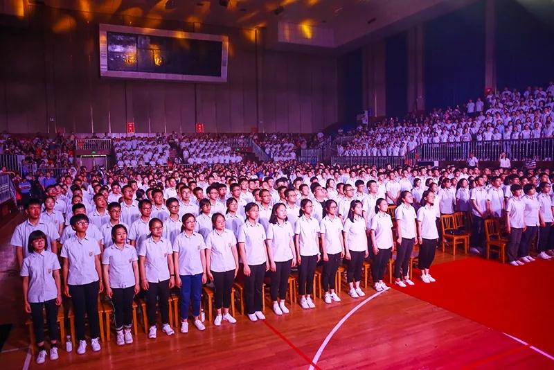在主持人领誓下,全体同学庄严宣誓,不忘海中培养,不忘师长教诲,以诚心对他人,以孝心对父母,以热心对社会,以忠心对国家,胸怀理想,志存高远,脚踏实地,勤奋学习,砥砺奋斗,练就本领,为国争光,为民造福。最后在嘹亮的海中校歌声中,成人仪式圆满结束。