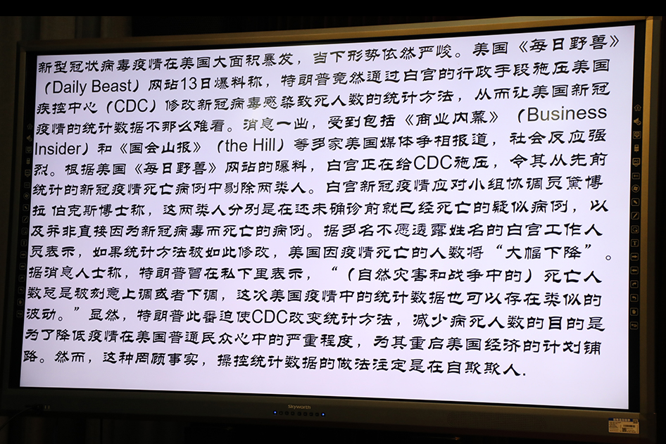 临近尾声,主持人通过蓬佩奥、特朗普等推卸责任、恶意谎报感染人数等失信行为,启示大家:诚信与正直不仅之于个人,还对于一个国家有着至关重要的作用。