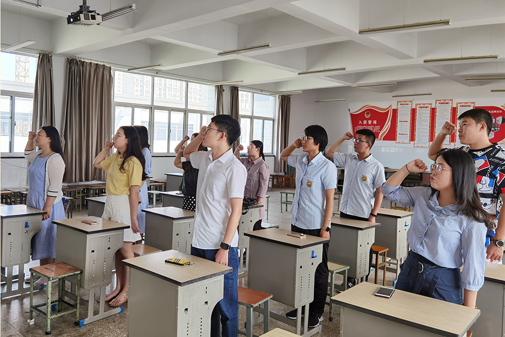 参加本次活动的团员在牛璇同志的领誓下进行了庄严宣誓,“我志愿加入中国共产主义青年团,坚决拥护中国共产党的领导,遵守团的章程,执行团的决议,履行团员义务,严守团的纪律,勤奋学习,积极工作,吃苦在前,享受在后,为共产主义事业而奋斗。”宣誓声在室内回荡,大家坚定的目光和铮铮的誓言展现出共青团员积极向上的活力和朝气。