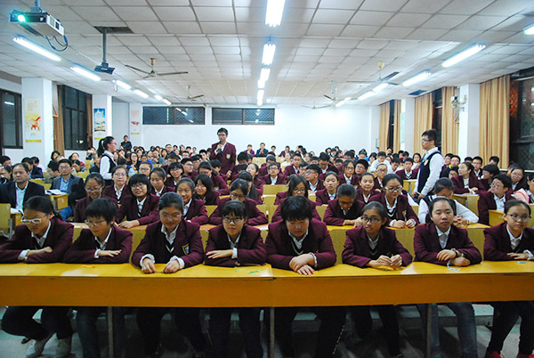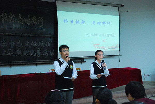 10月16日晚七点,在学校奥一楼阶梯教室举行了新学年首次班会观摩活动及班主任培训会。此次活动邀请了董裕华副校长、高一、高二全体班主任、德育处王太和老师、各班班长、团支书及部分家长代表参加,活动由德育处顾庆华主任主持。