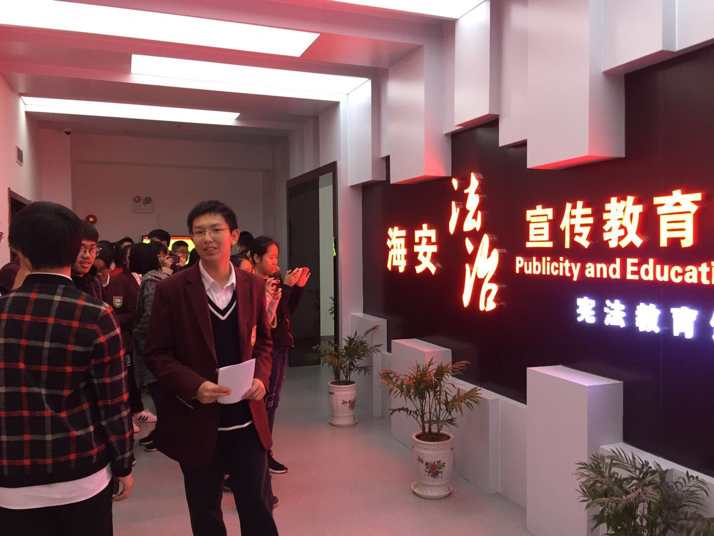 10月29日下午,9323彩集团高一(2)班的同学们参观了海安县宪法馆。