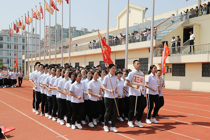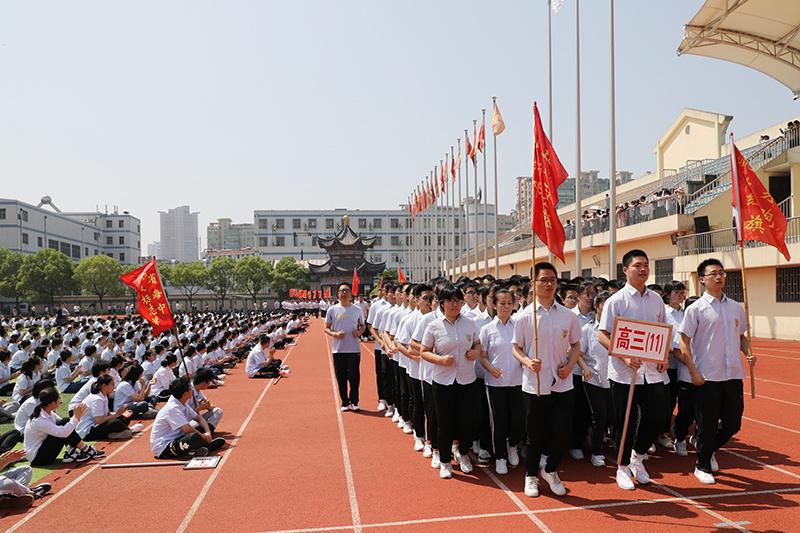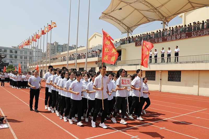 高一高二同学在跑道内侧为高三的学长们鼓掌助威,欢呼喝彩,表达了他们的热情鼓励和美好祝愿;老师们也挥舞双手、热情欢呼,为自己的学生们加油鼓劲;不少学生家长在跑道边、在看台上为孩子助威祝愿,家长们举起相机将孩子们成长的关键瞬间定格成永恒的美好画面。师长亲人和学弟学妹的激励和鼓舞,给高三学子赢在高考、迈向辉煌增添了无穷的力量。