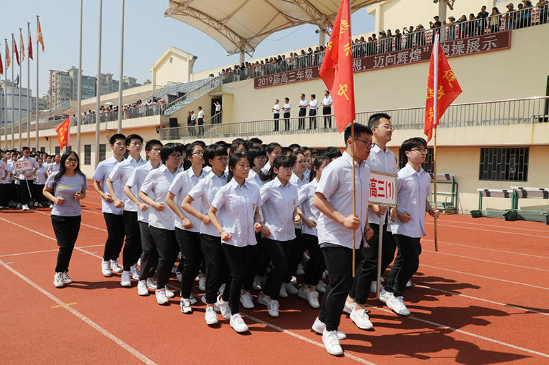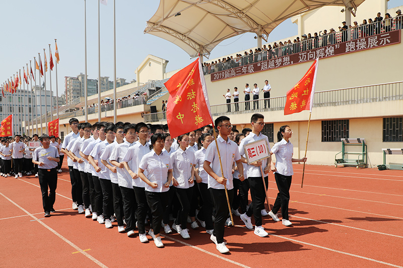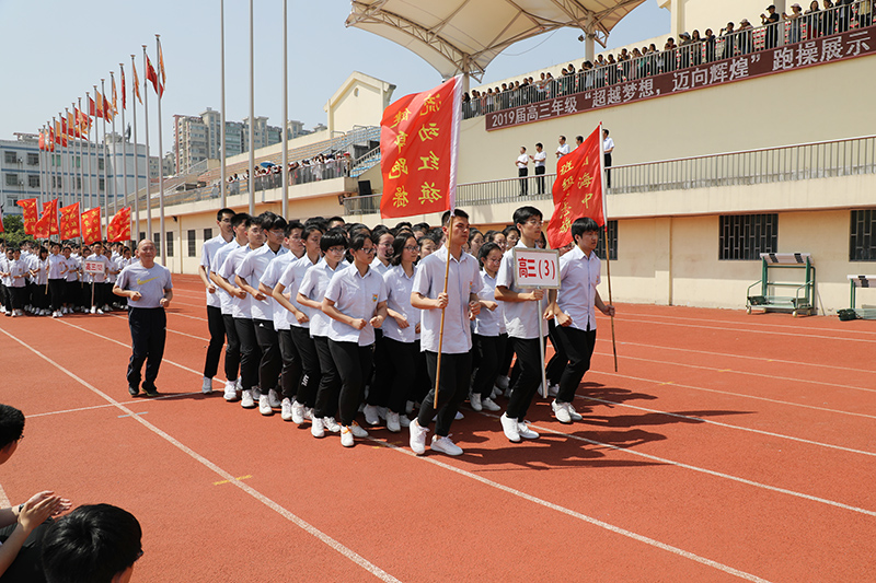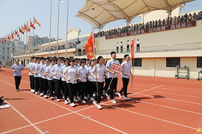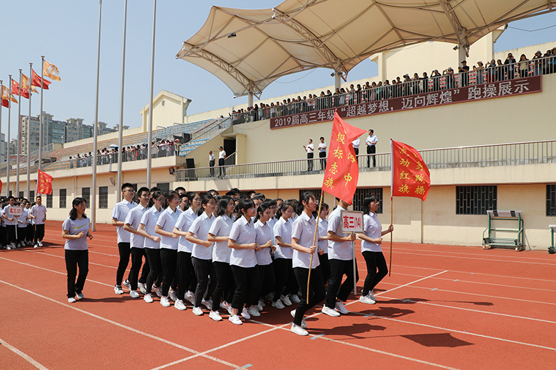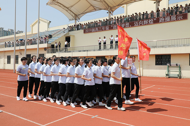 2019年6月3日上午,海安高级中学在大操场举行了2019届高三学生“超越梦想,迈向辉煌”跑操展示活动。高三年级全体同学热情饱满,斗志昂扬,队列整齐,步伐坚定,展示了他们三年来优异的跑操成果,也展示了高三年级学生积极进取、勇敢顽强的青春风采。学校中层以上干部、高三年级全体老师、高一高二全体学生和部分高三学生家长到场为高三学子加油助威。跑操展示活动由学校副校长董裕华主持。