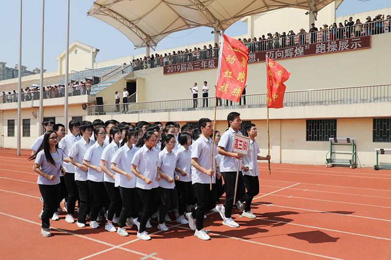 学校副校长董裕华希望高三同学要做到“三心”和“二意”:一是要有信心,二是要有耐心,三是要有平常心;同时要有禅意和情意。海中的优秀不是一个人的优秀,也不是少数人的优秀,而是每个同学都非常优秀,是整个团队的优秀,是一批批、一代代海中人将优秀不断地传承、光大。按部就班把能做好的事情尽量做到位,胜不骄败不馁,拿得起放得下,亲人朋友之间主动倾诉,笑在最后的才是真正的英雄!希望大家牢记吕校长的教导,用优异的成绩向建国70周年和建校80周年献礼。期待每个同学都超越梦想,迈向辉煌!最后,董校长宣布2019年高三年级“超越梦想,迈向辉煌”跑操展示出发!