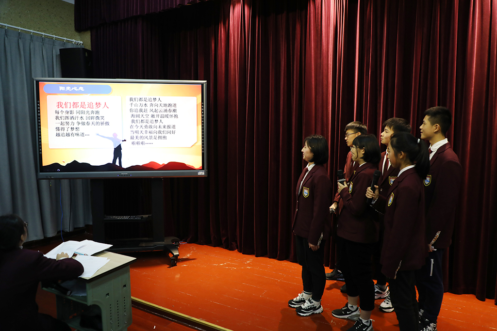 临近尾声,全班同学合唱《我们都是追梦人》,表现了积极向上的人生态度,班会在歌声中落下帷幕。