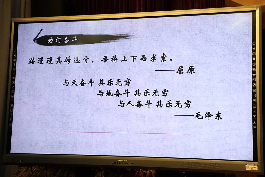 本次班会由朱宇玥、杭丽程同学主持,首先,贝多芬的《命运交响曲》拉开了班会的序幕,主持人介绍了本次班会的三个方面:何为奋斗,为何奋斗,如何奋斗。随后,同学们了解了华罗庚的奋斗经历,在提问环节中纷纷阐述了自己对奋斗的理解。接着,关于《当幸福来敲门》和《一球成名》的两个小视频让同学们感受到了奋斗成功所带来的喜悦,深有感触,并分享了自己的奋斗经历。然后,现场进行了扑克牌小游戏和知识竞赛,气氛非常活跃。最后由姜常青,孙浩铭,蔡若钊和杭丽程四位同学激情洋溢地为本次班会朗诵了有关奋斗的诗歌,赢得了同学们的一致好评。