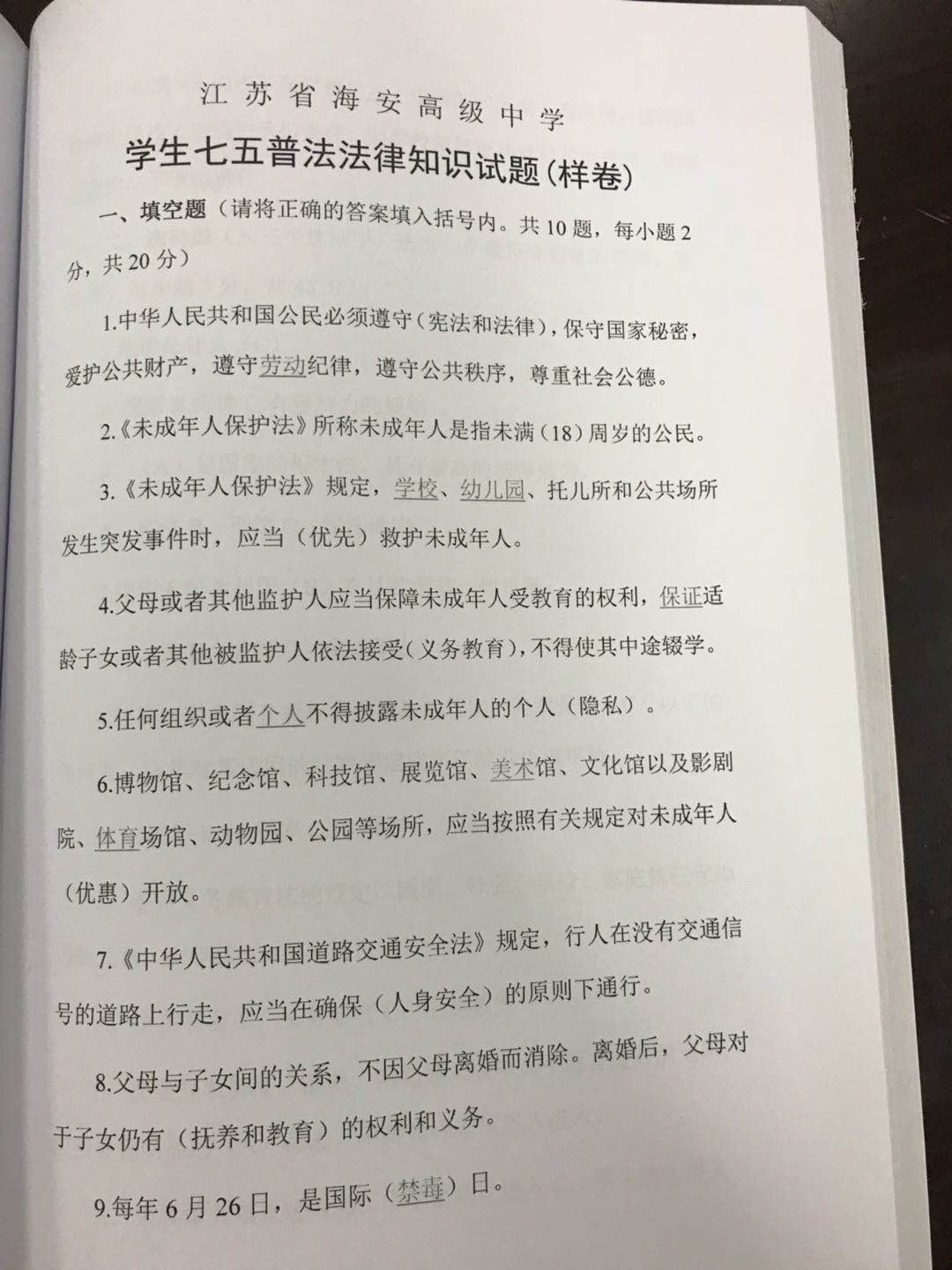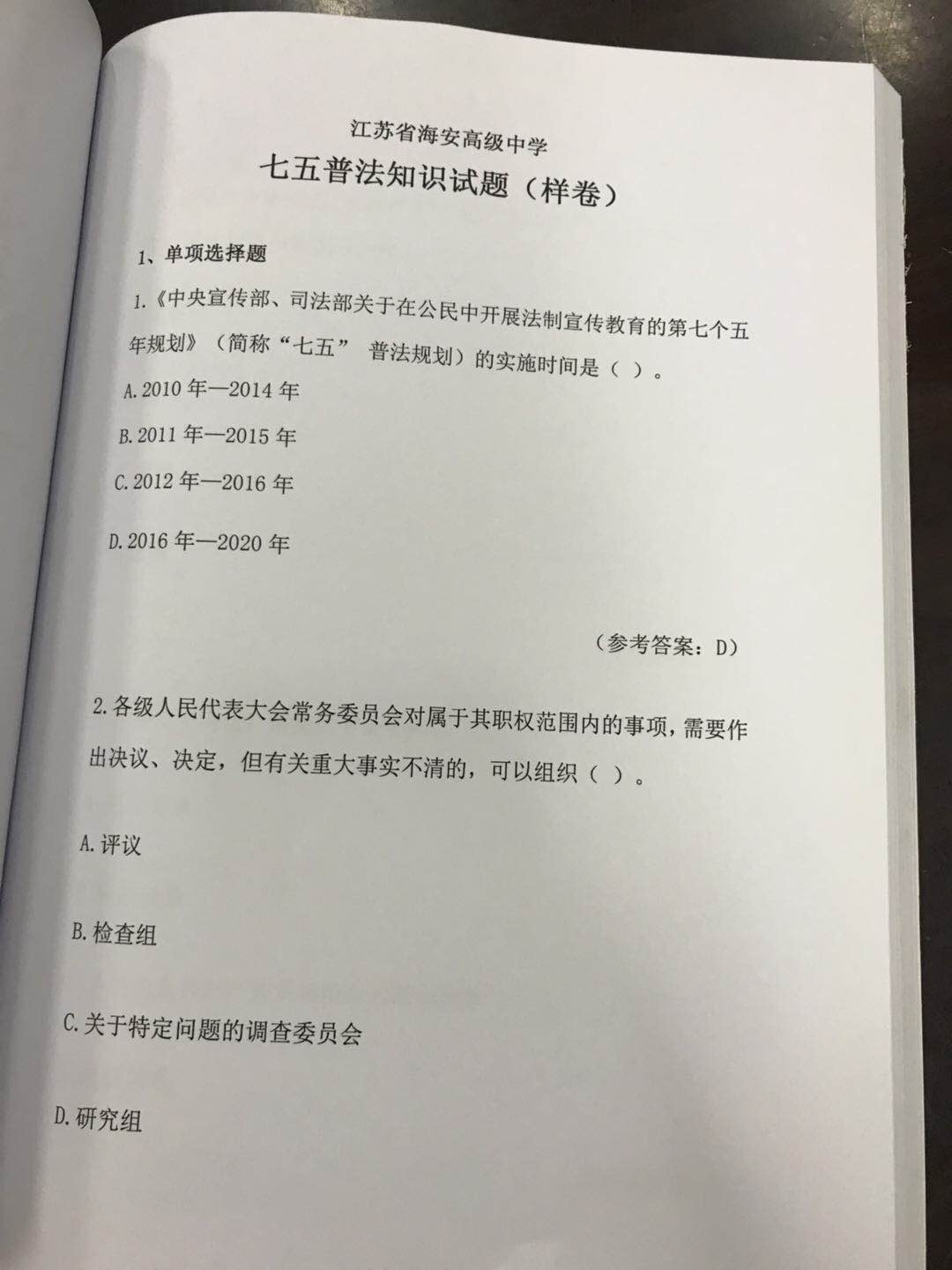法治教材及考卷