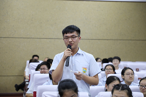 最后,董裕华副校长就学校主题班会工作做了专题辅导。他从“班会的目的”“班会存在的主要问题”“班会的传承与发展”三个方面对新学期主题班会工作作了指导,提出了明确的要求。他指出:“做阳光高中生”主题班会活动是海中传统特色项目,也是海中“阳光高中生”品格提升工程的重要组成部分。班主任要指导学生上好每一节班会课,求实效,重创新,丰富校园文化生活,促进学生能力提升,为学生的终身发展奠基。