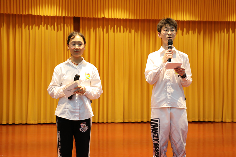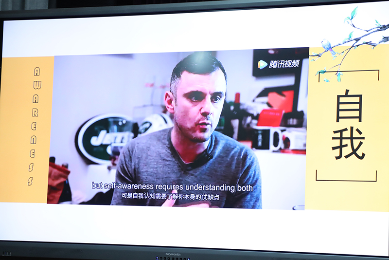 班会以一段振奋人心的入场视频拉开了序幕,此开场紧紧抓住了大家的心弦。随后,主持人何沐、范墨涵带领大家观看一段关于认识自我的短片。就此短片,主持人以丑橘和奶茶为例,带领大家进一步思考,引出了本次班会的第一个环节:认识自己。