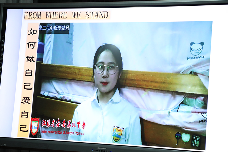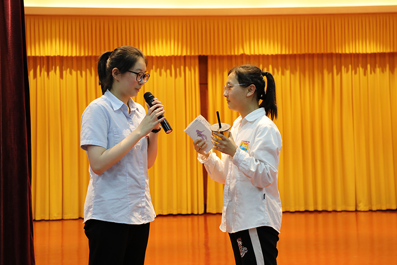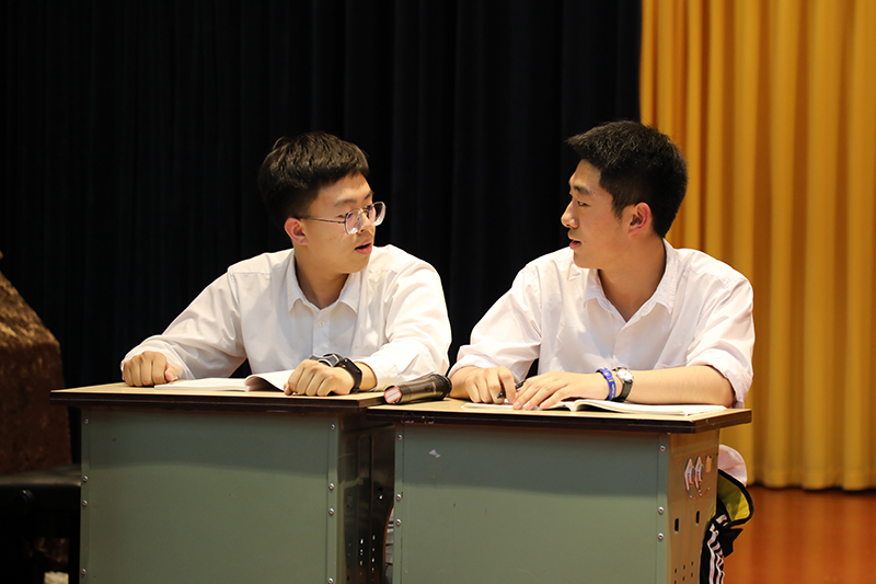 随后,主持人引导大家进入班会课的第二环节:检视自我。一部由傅文劼、董怡辰同学编写,康宸瑀、黄艺、张晶莹、冒奇言同学表演的情景剧《做自己有错吗》将本次活动推向了高潮。此剧讲述了一段小插曲:小康同学在做自己的过程中,忽视了自身性格中存在的缺陷,危害了同桌黄何的利益。此举对他人造成影响,同时自己也十分苦恼。通过此环节,同学们都从角色身上或多或少地找到了自己的影子,感慨颇多。
