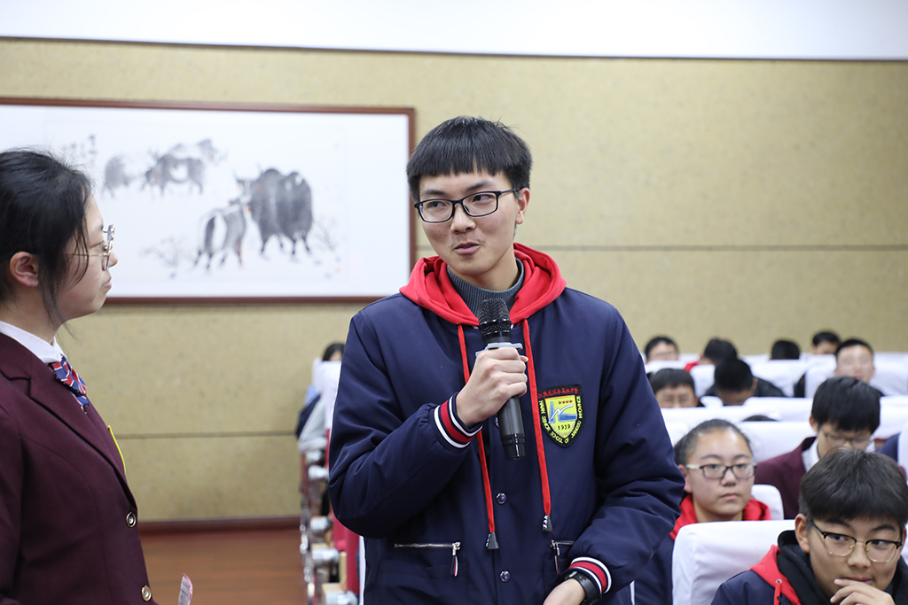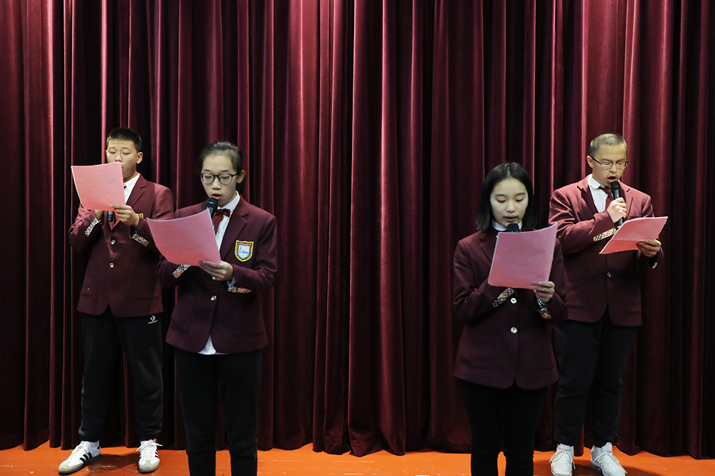 2019年12月1日19点,高一(14)班在奥林匹克楼博雅小剧场举行了“仁爱美丽身心”主题班会活动。德育处副主任王景根、班主任徐国进、家长代表、各班学生代表、学生会宣传部干事、“四自”委员观摩了此次活动。本周“四自”督查小组相关同学进行了志愿引导和评价记录工作。