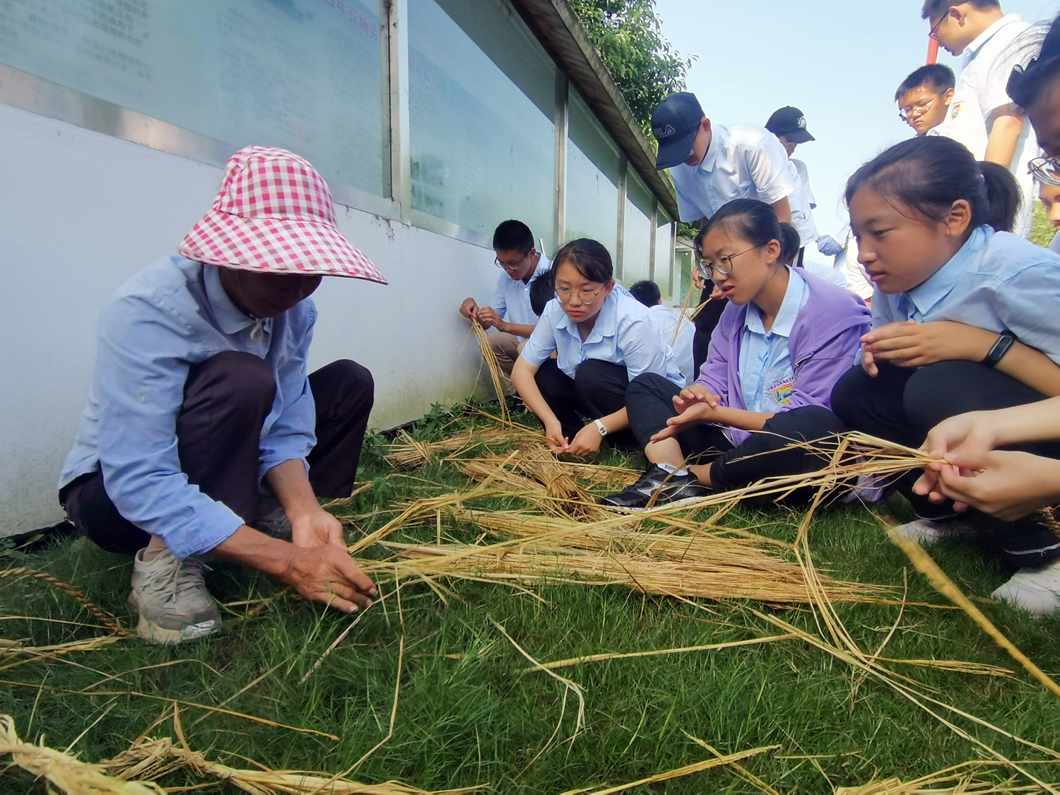 “搓草绳,搓草绳,搓出来的草绳是长又长。”学生们哼着小曲儿,三五成群地搓起了草绳。一根根细长的稻草秸秆到了学生手中仿佛被施了魔法,不一会儿就汇成了一股粗草绳。跳绳,同学们赋予了草绳生命的活力。草绳起落间,学生们的欢声笑语在阳光下回荡。劳动为大家带来无穷的欢乐。