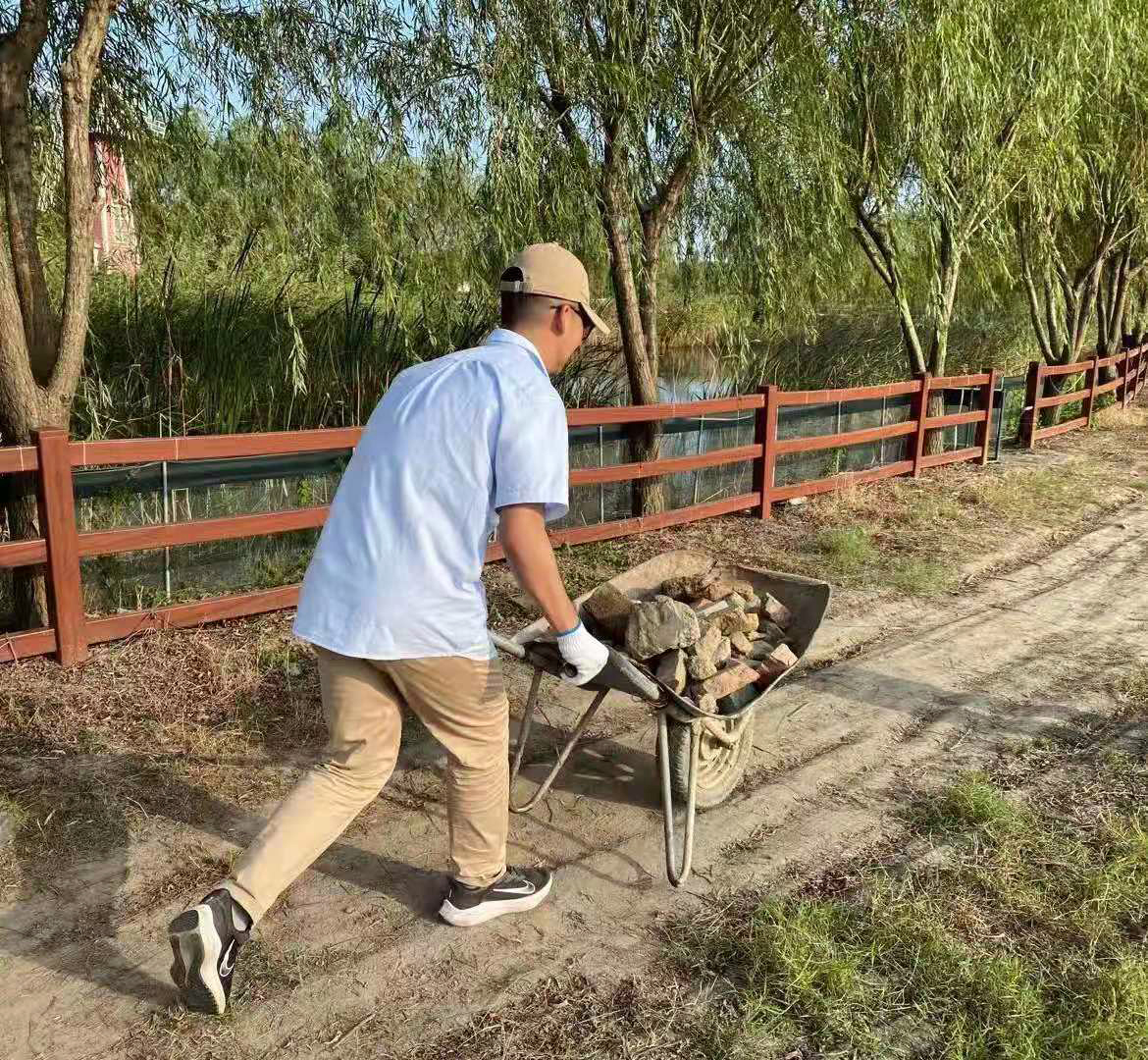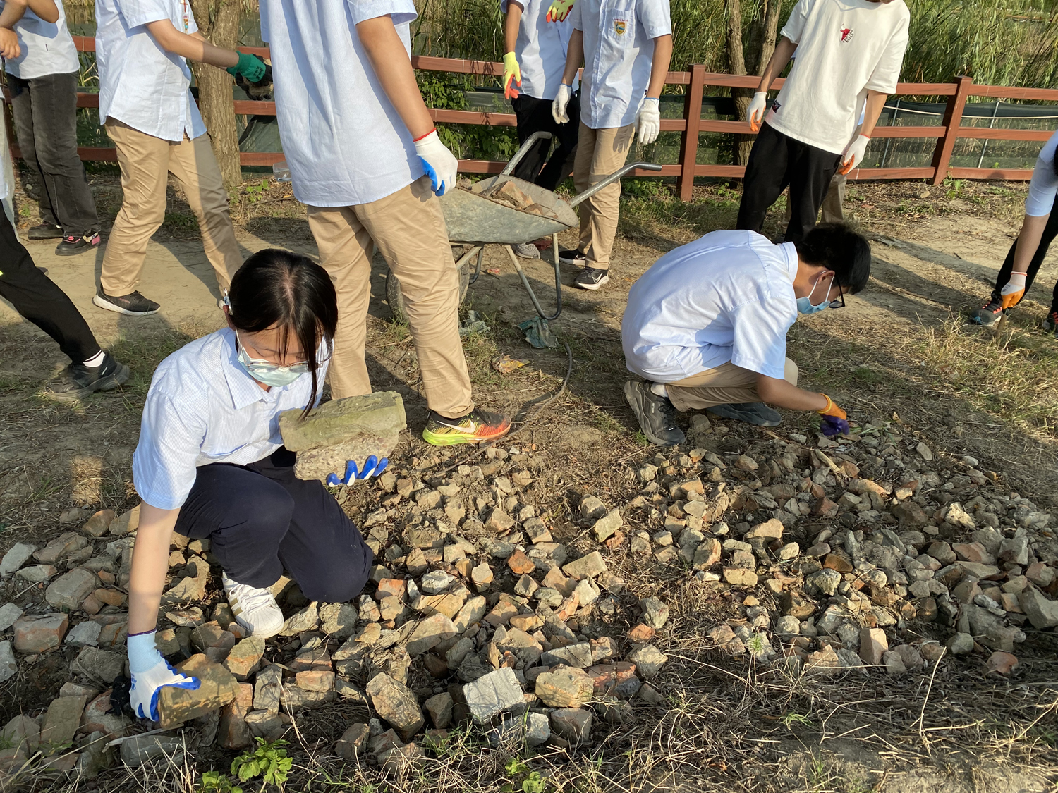 另一同学没反驳,只是默默搬起砖块摞在小推车里,在一趟又一趟的运送中调整着小推车上砖块的堆放高度、角度和推小车时的重心高度。