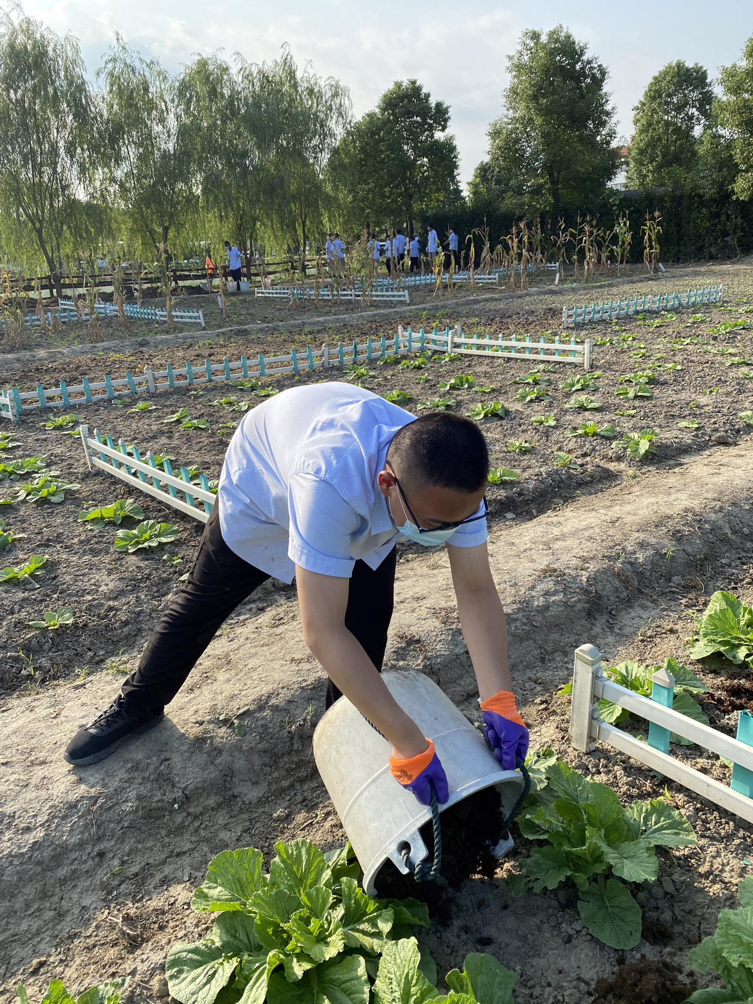 “伴着锄草机的嗡嗡声,宽广的草地在同学们的细致操作下变得平整。埋头的姿势,认真的神态,有力的步伐,轻轻袭过的微风吹拂了同学们的发梢,和煦的暖阳抚慰着往日的浮躁。心平静,近似一潭湖水又或是幽静的树林,面带的微笑和坚韧,无不彰显出青春和活力。”——摘自高一5班李心乐《我的农场第一天》