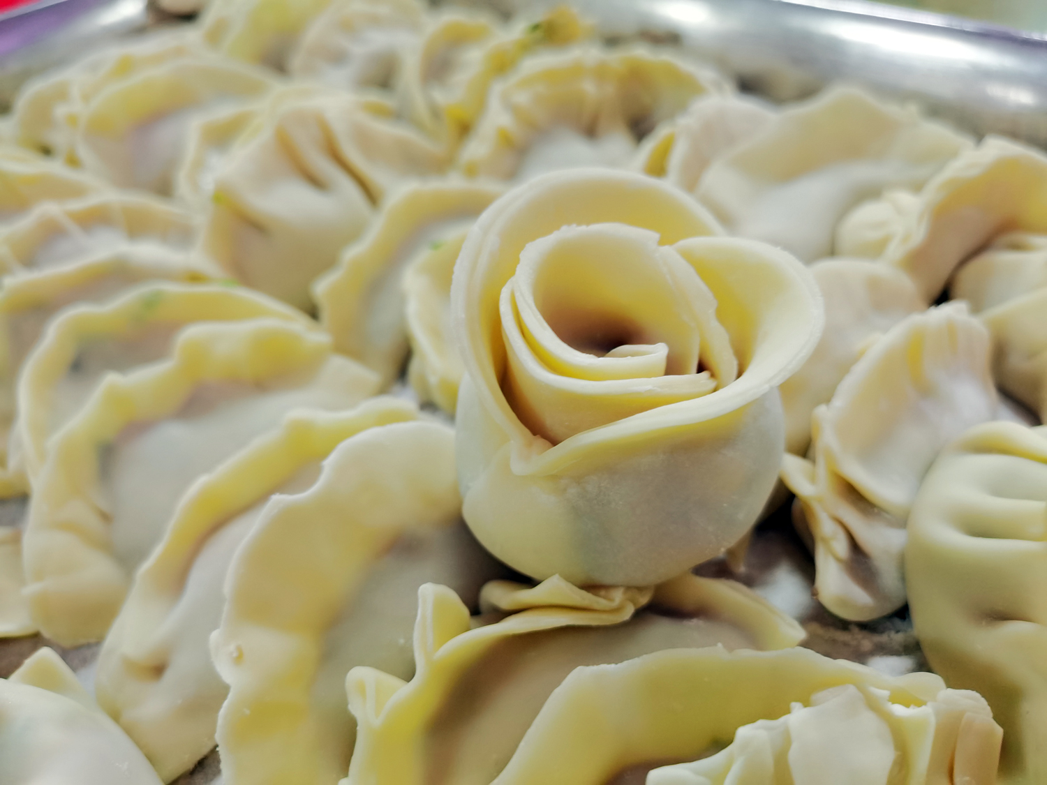 同学们没有气馁,继续摸索着。手指翻飞,一只只肥嘟嘟的饺子出现在托盘上。随后,大家开动脑筋,包起了创意饺子。有叶子状的,有玫瑰花样子的,还有小老鼠样式的,形态各异,玲珑可爱。包饺子这项劳动不仅有趣,更提高了同学们的动手能力,培养了大家的耐心。