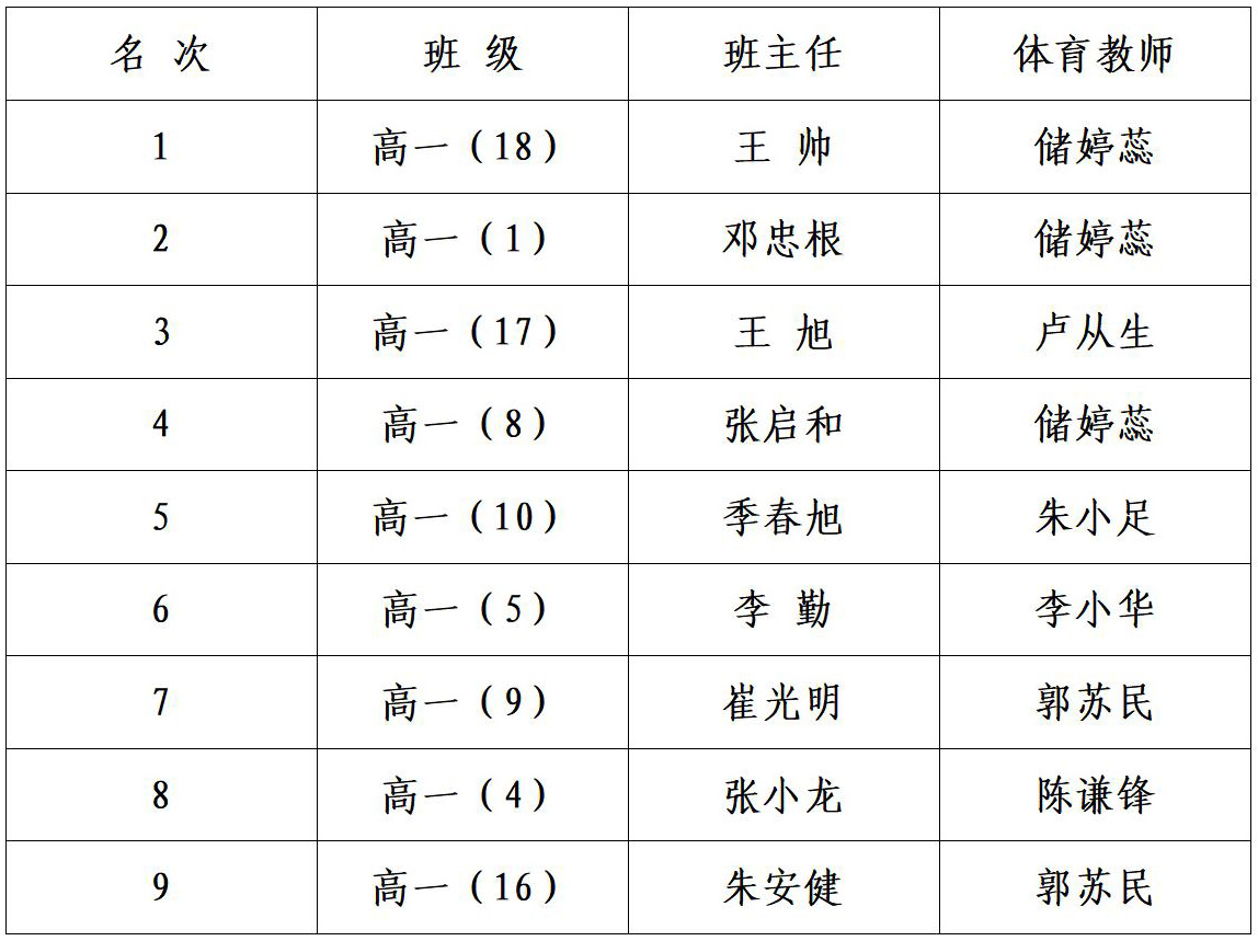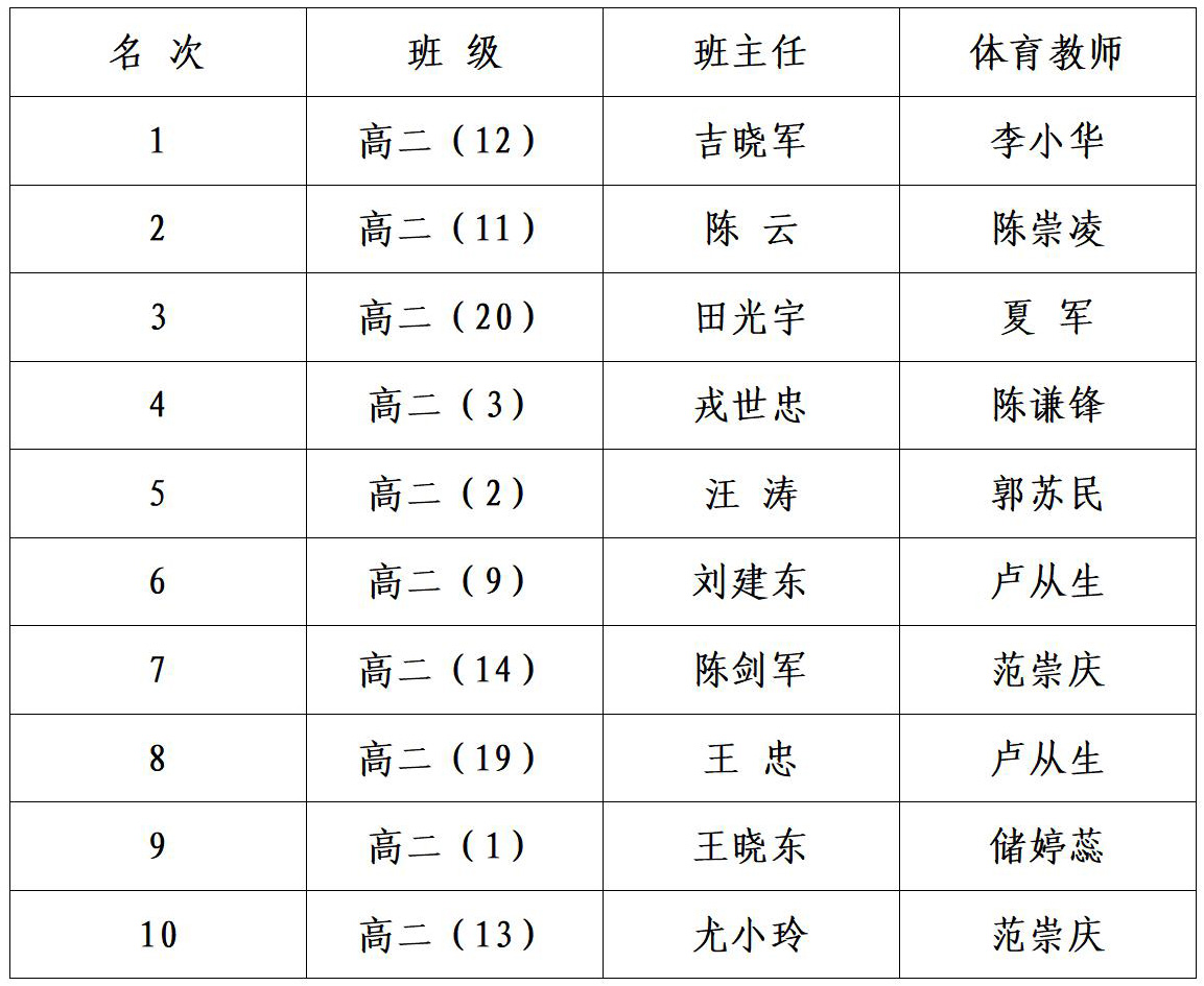 经过激烈角逐,以下班级获得流动红旗: