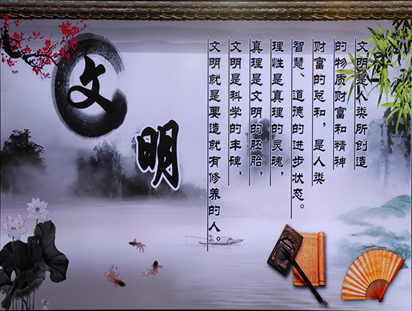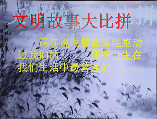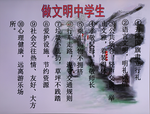 本次班会包括四个部分。首先班会主持人以有关文明的问题切入主题,同学们纷纷积极思考并发表了自己的观点。接着,主持人带着同学们反思校园里的一些不文明现象并发出做文明中学生的倡议,得到了同学们的响应。然后,大家一起观赏了两个有关文明的短片,短片震撼人心,引起同学们的共鸣,不少同学潸然泪下。最后大家以诗朗诵完美地结束了本次班会课。