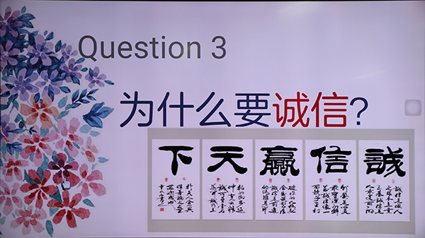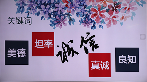 纵观本次主题班会全程,同学们积极思考,踊跃发言,主持人也热情互动,全场气氛热烈。同学们颇有收获,对诚信的理解又上新台阶,明白了诚信的意义的同时也找到了未来的努力方向,时刻提醒自己“做一个诚信的海中人”“做一个诚信的中国人”,让诚信之花处处芬芳绽放!