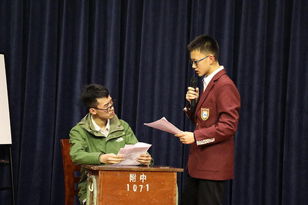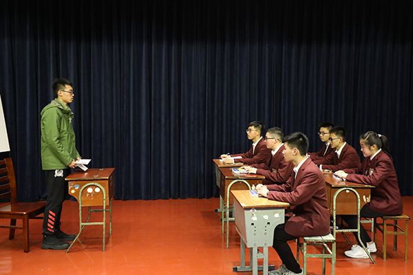 3月25日晚,高一5班在博雅小剧场举行“诚信——君子重然诺”主题班会,学校校长办公室曹文庆主任、教务处王忠副主任、班主任顾玉华老师、部分家长代表和各班学生代表观摩了本次主题班会活动。