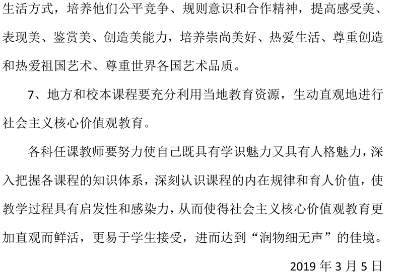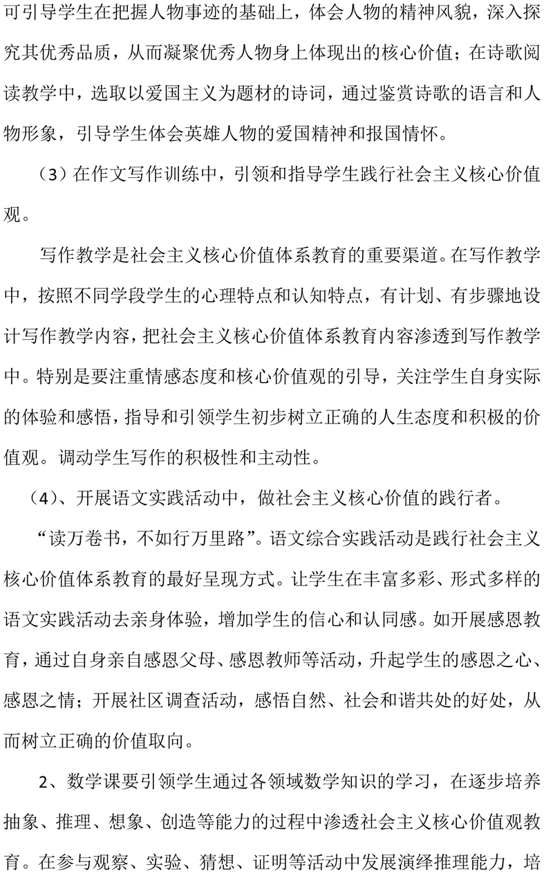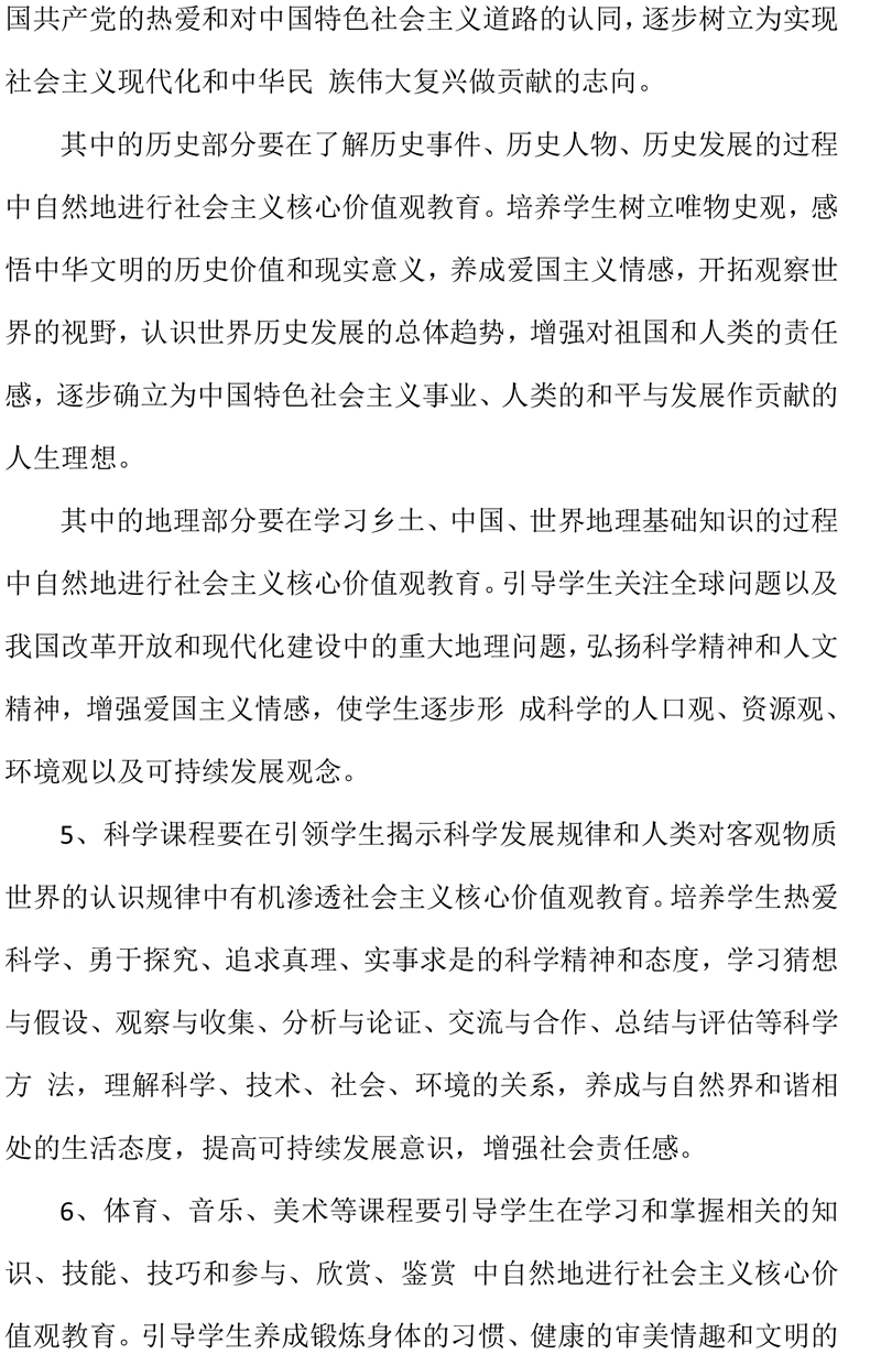2019年度学科教学渗透社会主义核心价值观实施方案