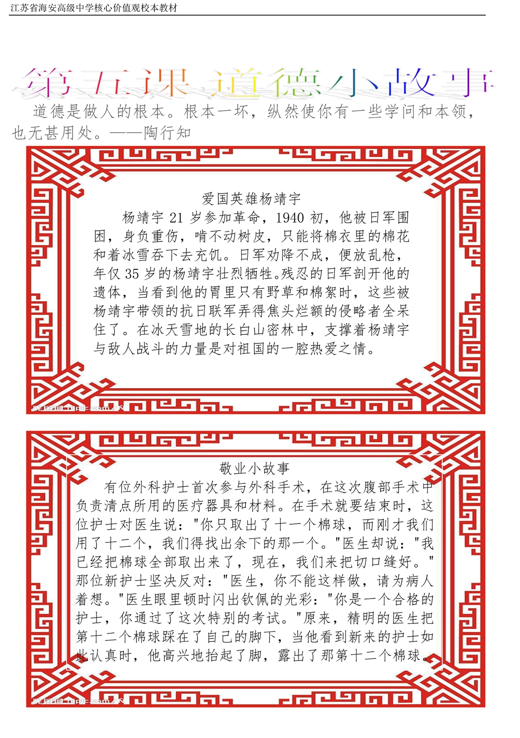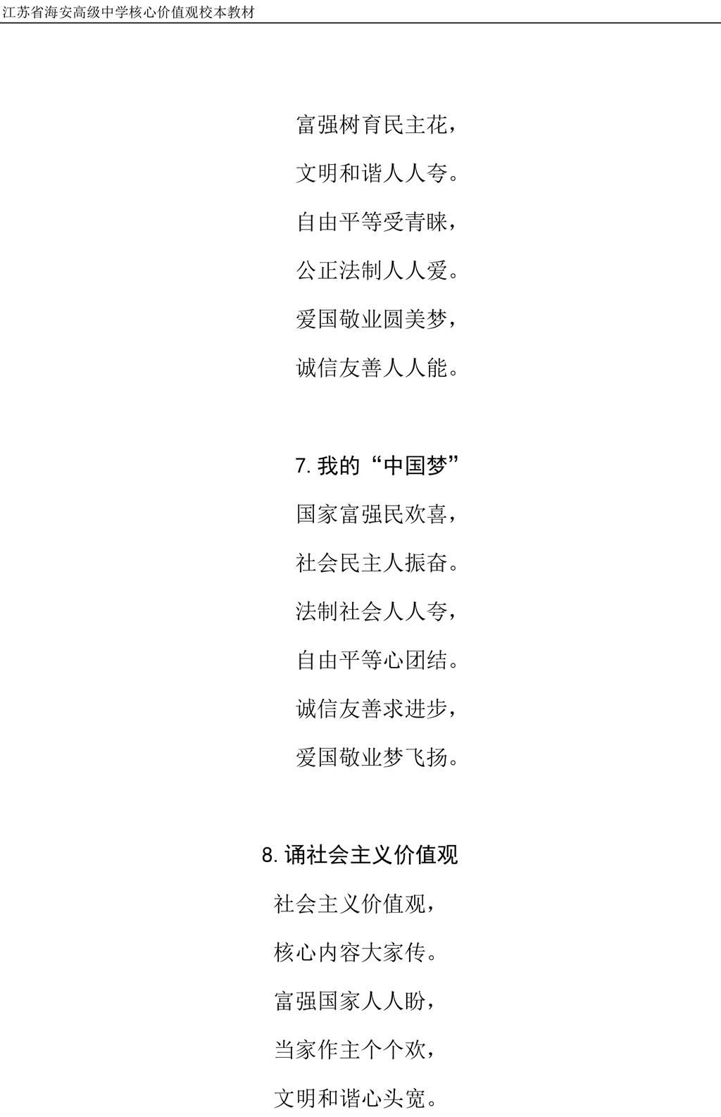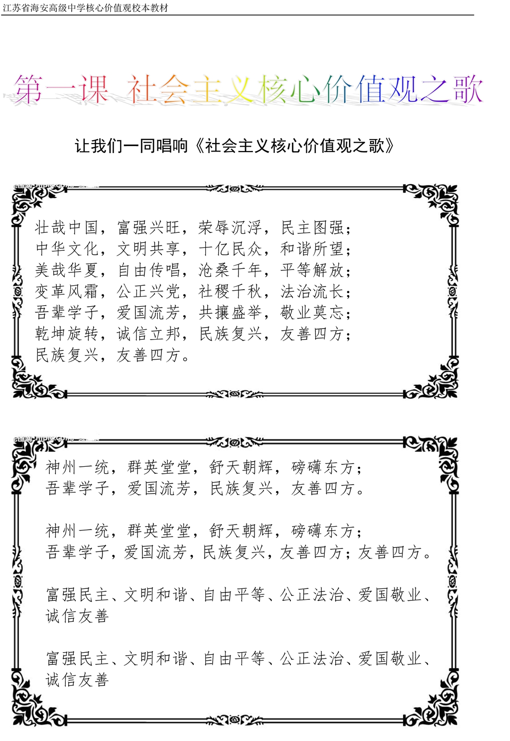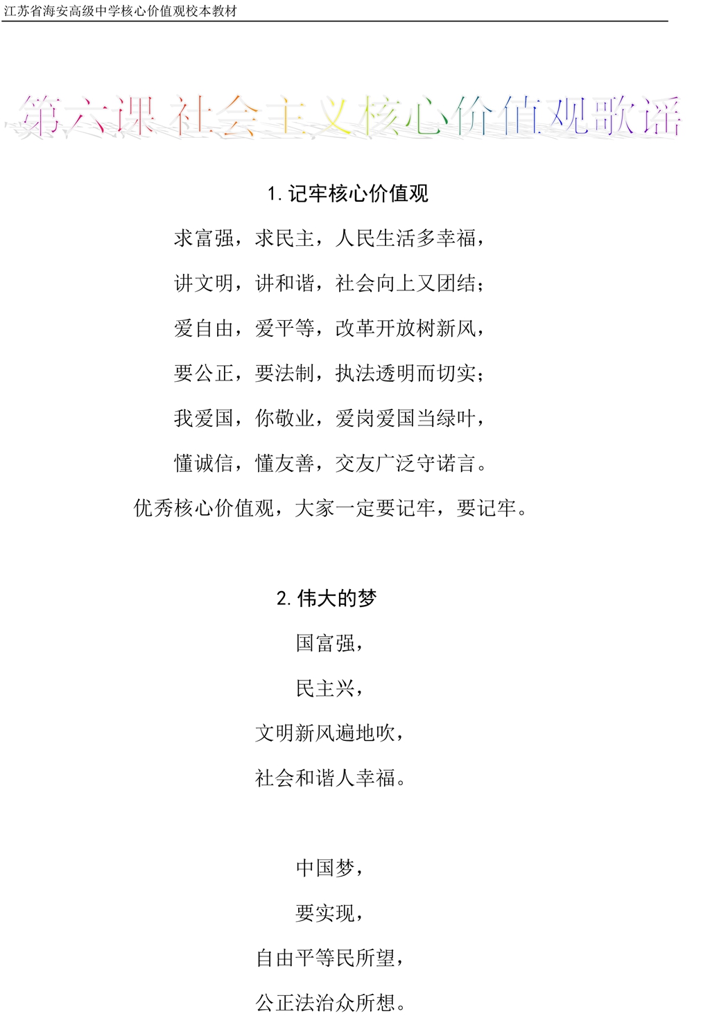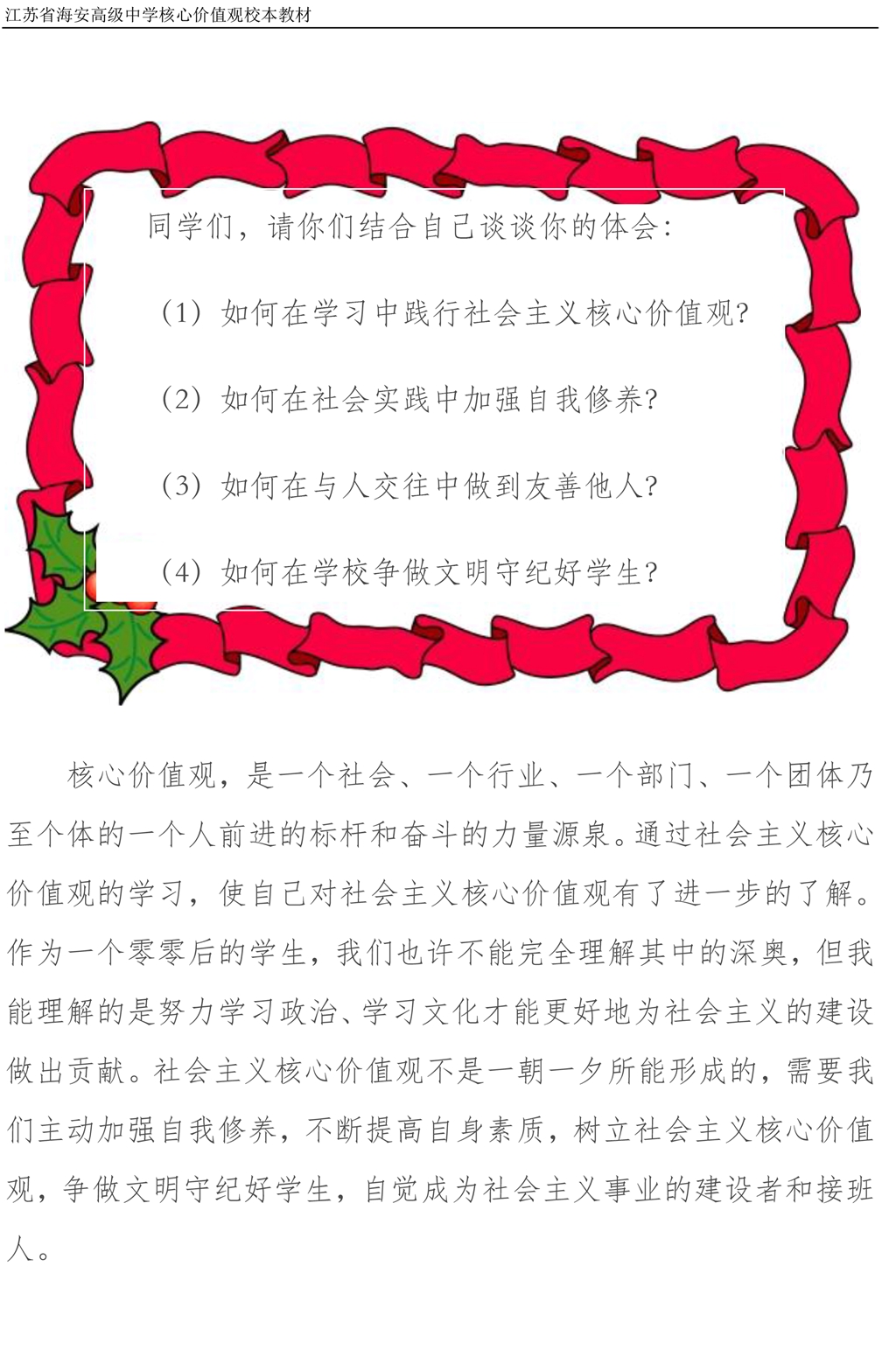 社会主义核心价值观校本教材
