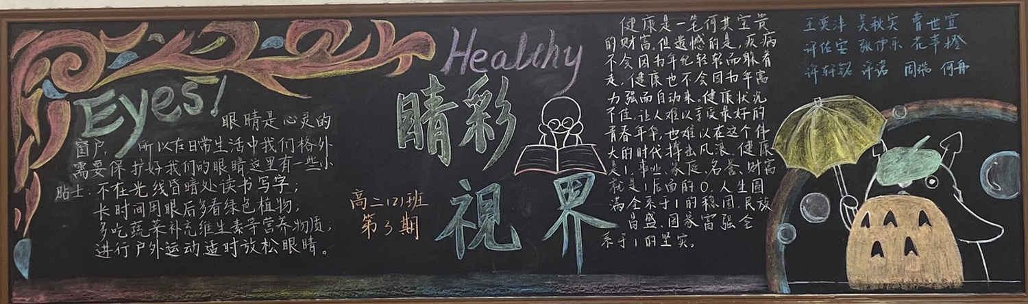 为进一步做好校园文化和班级文化建设,海安中学高一年级开展了以“民法典,与生活同行”为主题,高二年级开展了以“预防近视,保护视力”为主题的黑板报评比活动。