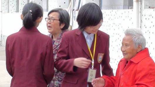 谢钰:我们问他们需要什么,他们都摇着头说不要,其实我们都清楚,他们缺爱,缺关怀,整天面对的只能是一成不变的宿舍,他们要的不是什么礼品,只是别人的陪伴。老奶奶说,我们在那儿只一会儿,她又能多睡几晚安稳觉了,那个看不见得奶奶,握着我们的手不让离开。