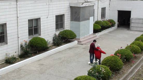 搀扶老人在院中散步