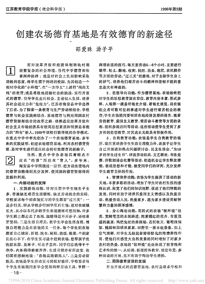 创建农场德育基地是有效德育的新途径