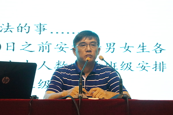 会议上肖剑主任首先对高一寄宿生情况进行了一个简单的介绍,接着对省海中学生宿舍安全制度, “十不准”,内务、卫生要求,常规检查评分细则等管理制度进行了详细解读,并就保持寝室卫生、加强内务整理、增强节约意识、学会自律自护、增强安全防范意识等问题向寄宿生提出了具体要求。肖主任还针对一些常见的问题提出了有针对性的建议,可操作性强。