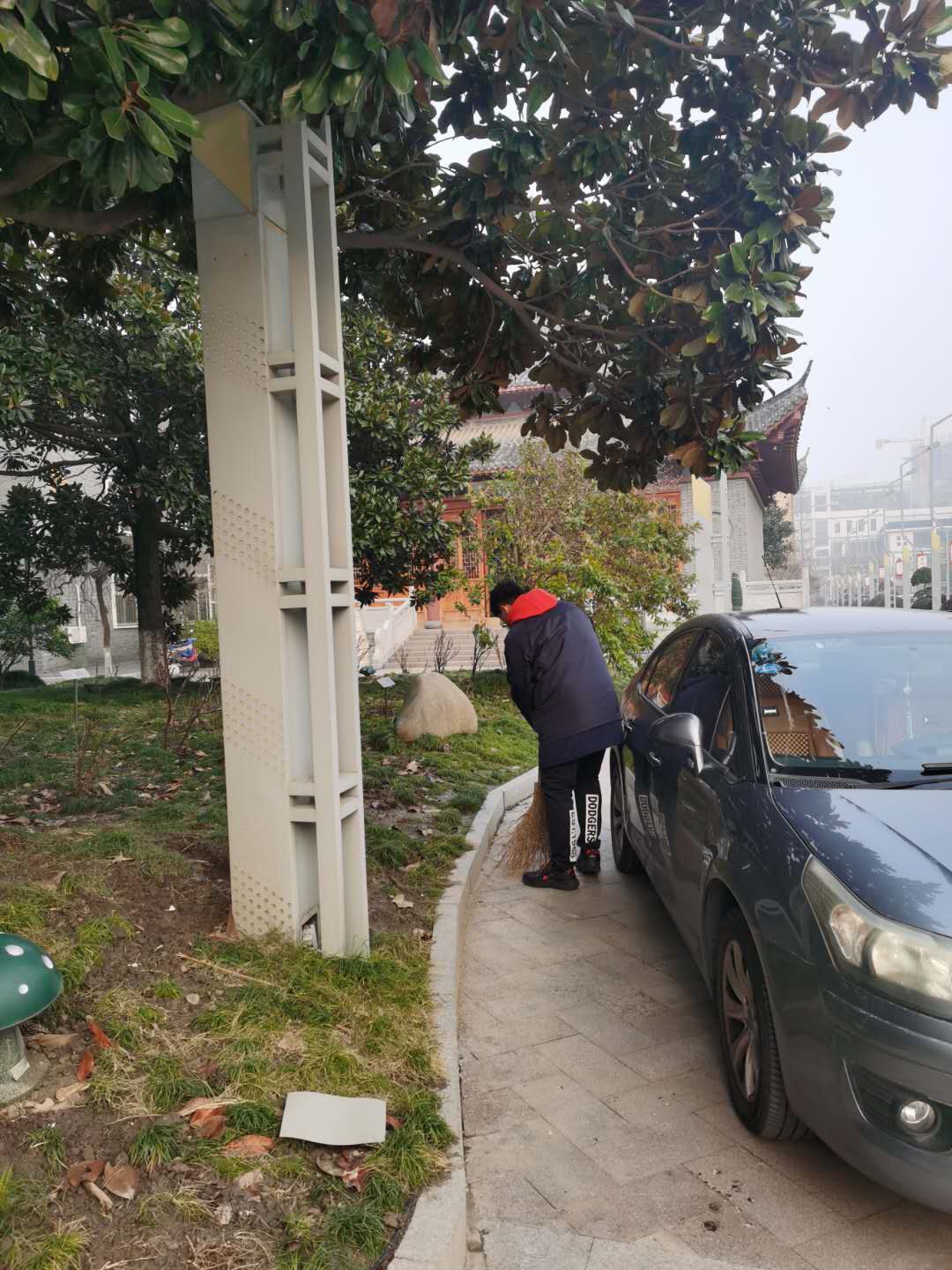 偌大的山石广场,我们不放过每一个角落;安静的林荫大道,我们认真清扫每一米的路径。