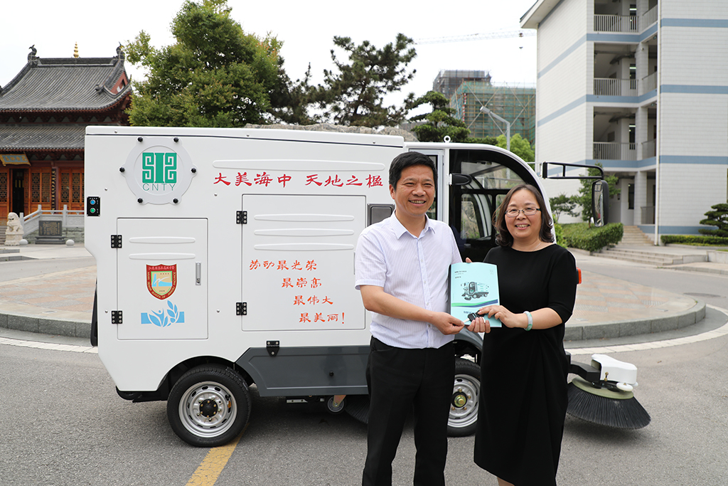 据悉,为助力我校的新劳动者教育,中国天楹集团股份有限公司向我校捐赠了这辆电动扫地车。