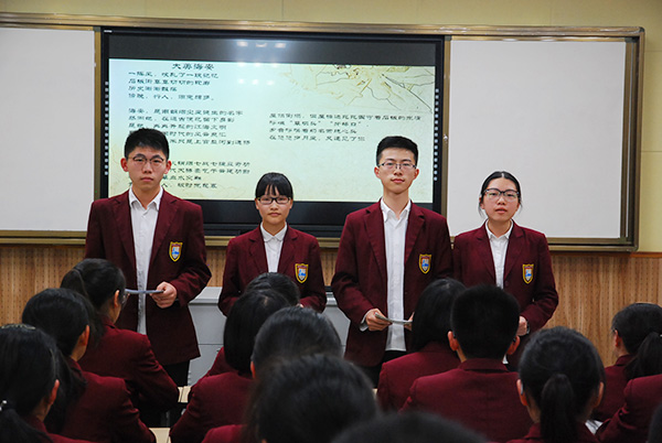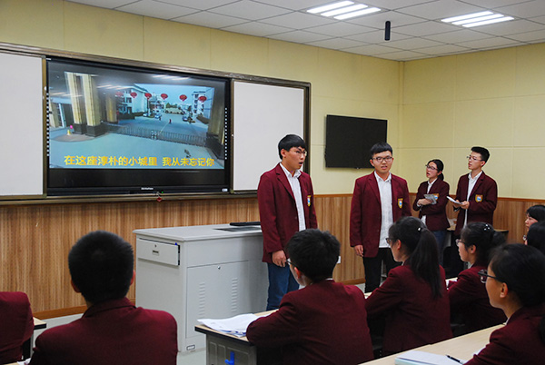 班会从烟雨朦胧、古朴清幽石板街开启,分为悠悠小城、筑梦时代和畅想未来三个篇章。璀璨久远的青墩文明,质朴精深的家乡话,丰富有趣的老习俗,回味无穷的海安美食……唤醒同学们心灵深处绵软的乡愁。现代城市定位,鲜明产业特色,区位优势发挥……展示了当代海安的蓬勃画卷。从组合数字鼻祖杨冰,到语言学家魏建功;从紫石公馆,到海中精神……激发了同学们敦品励学的进取精神。大美海安我来代言,现代海安我们建设……同学们的肺腑之言掷地有声。此次班会活动完全由同学们自主设计、自主排练、自主实施,融合了小品、朗诵、歌咏、访谈、竞答等多种活动方式,穿越时空,通达古今,清新自然,寓教于乐,很好地激发了同学们关注家乡、亲近家乡、建设家乡的情怀。