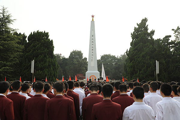 全体师生们肃立于人民英雄纪念碑前,敬献花环,低首默哀,寄托无限的哀思和敬仰;聆听英雄壮举,感怀革命先烈的英勇和顽强;绕墓一周,缅怀志士的精神和功绩;瞻仰遗物,铭记历史和感知和平生活的不易。