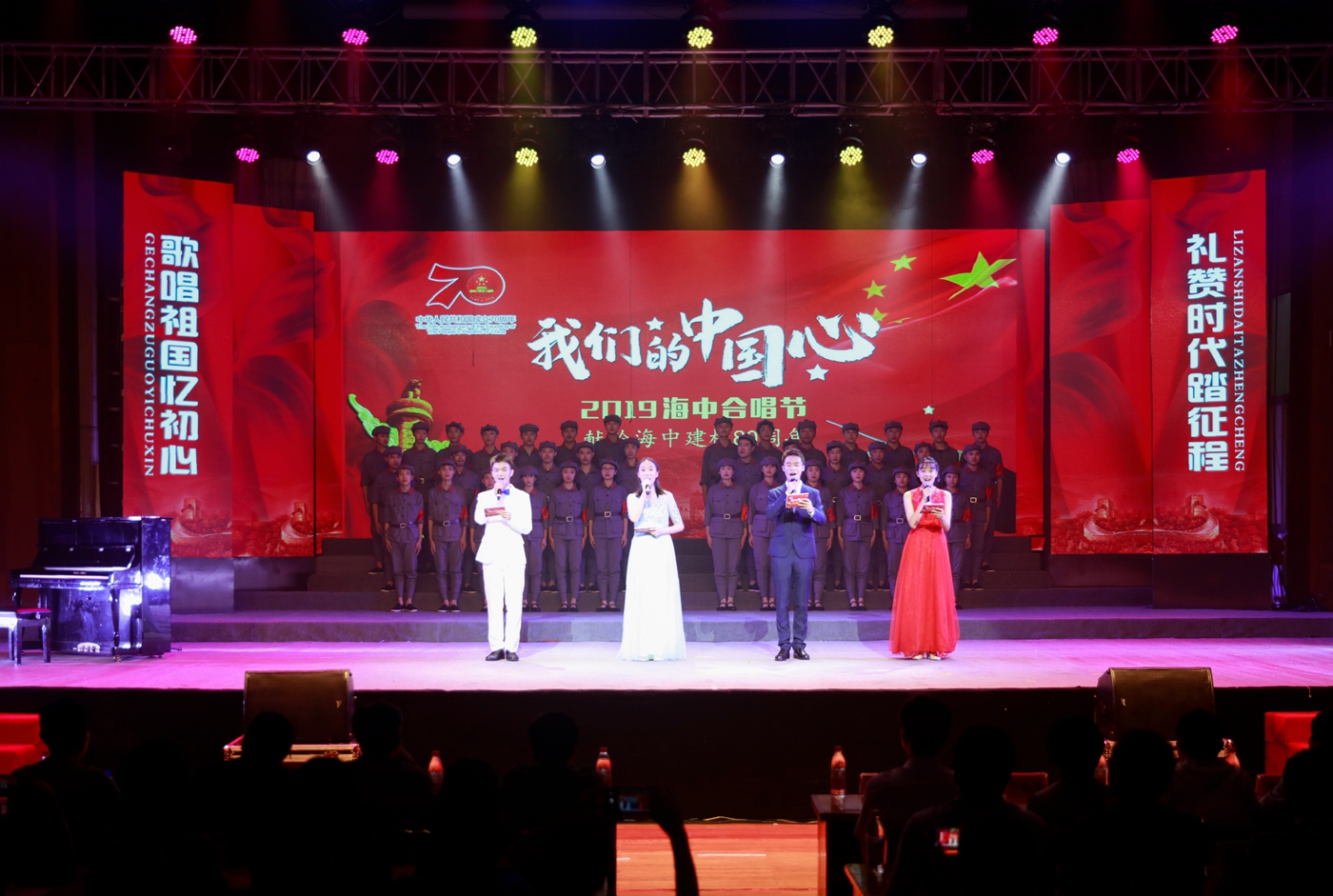 在祖国的第70个华诞来临之际,同学们用歌声记录时代,用歌声赞美我们伟大的新中国,献礼海中建校80周年。合唱分为三个篇章:第一篇章为“忆往昔峥嵘岁月稠”包括《井冈山上太阳红》《毛委员和我们在一起》《映山红》《十送红军》《游击队之歌》《弹起我心爱的土琵琶》《南泥湾》等曲目;第二篇章为“人间正道是沧桑”包括《今天是你的生日,中国》《听妈妈讲那过去的事情》《没有共产党就没有新中国》《共和国之恋》《党啊,亲爱的妈妈!》《江山》等曲目;第三篇章为“数风流人物,还看今朝”包括《精忠报国》《共和国选择了你》《向往》《众人划桨开大船》《中国走进新时代》《共筑中国梦》等曲目。师生歌唱祖国忆初心,礼赞时代踏征程。