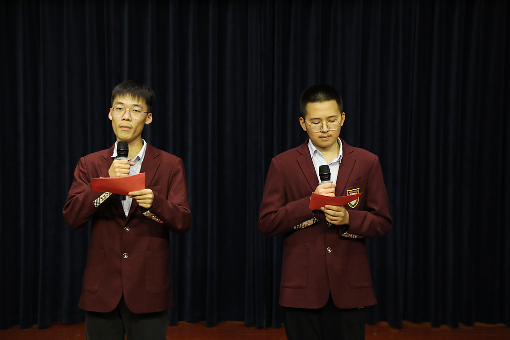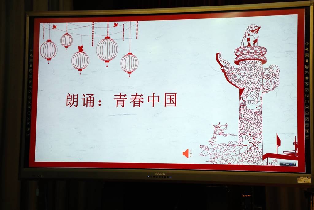唐谦、罗媛元、万益鑫、丁曹诗雨四位同学带来的诗朗诵《青春中国》,引发了同学们心中的感悟:在岁月的流逝中,爱国诗歌犹如一股美妙的清泉,时时荡涤着我们的心灵。最后,两位主持人带领全体同学一起宣誓,立下了青春的誓言,做出了爱国的承诺。