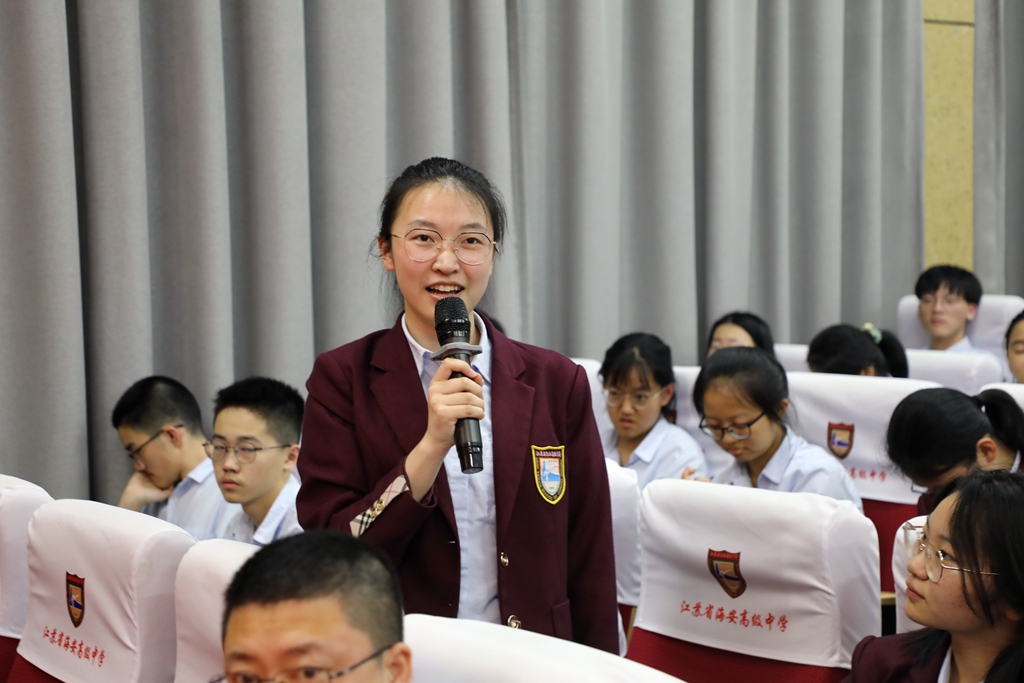 在班会课结束之后,田光宇副主任对班会课进行了点评,他分别用“立意美,内容美,形式美,趣味美,教育美”五个词语肯定了同学们的表现。他引用鲁迅先生的话“中国自国以来就有埋头苦干的人,就有拼命硬干的人,就有舍生求法的人,就有为民请命的人,他们是中国的脊梁”告诉我们,身为中国青年,身为海中学子,我们要秉承革命先烈精忠报国的赤子雄心,肩负创造更辉煌祖国的责任,成为祖国未来的脊梁。